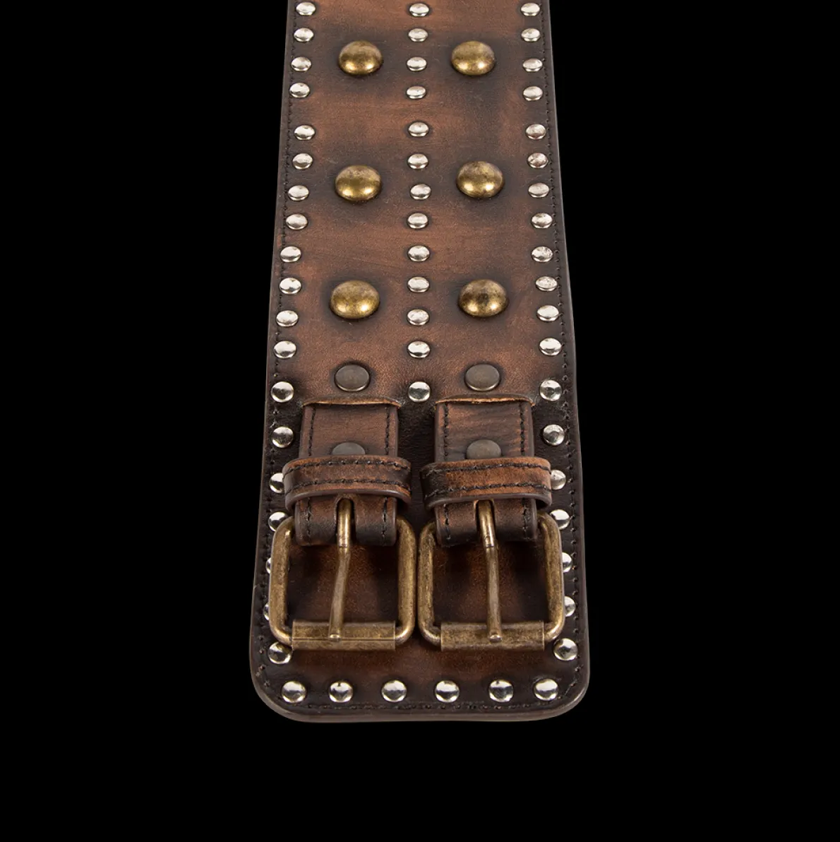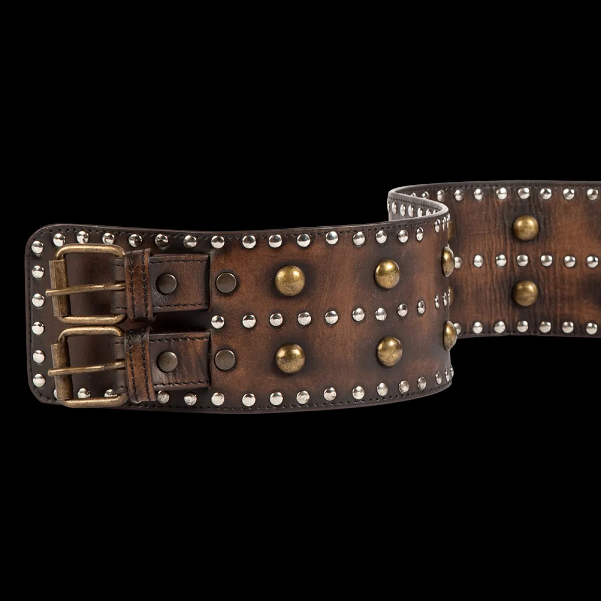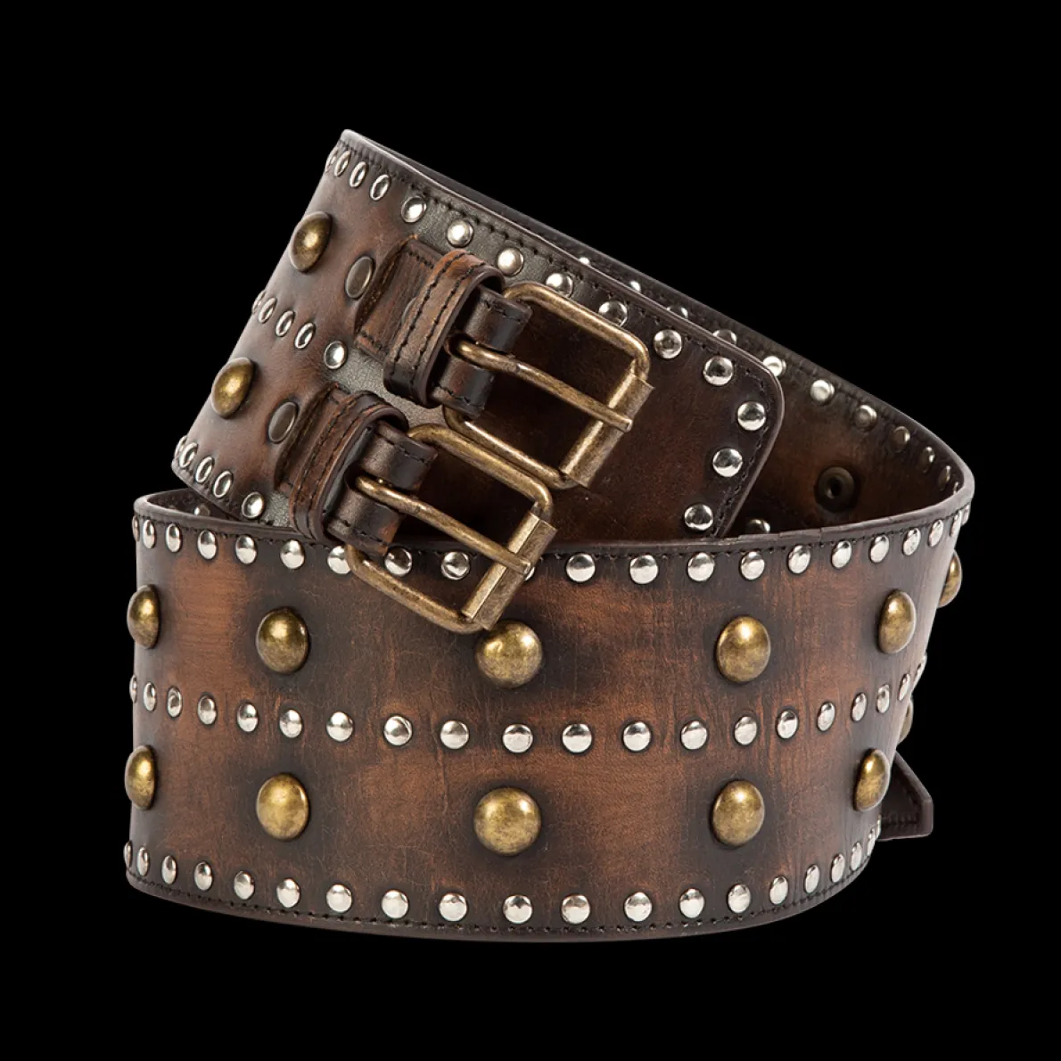 Aline – The Perfect Waist-Cinching Belt That Accentuates Your Natural Curves. This Full-Grain Leather Belt Features Rustic Stud Embellishments And A Double Buckle Accent. Handcrafted In Mexico With 100% Full-Grain Leather. 3 ⅜”Strap Width 1½”Buckle Height 39″ Full Belt Length 32″First Hole Measurement 36″Last Hole Measurement 1 ¾” Spacing Between Holes Measurements Taken From Size Medium