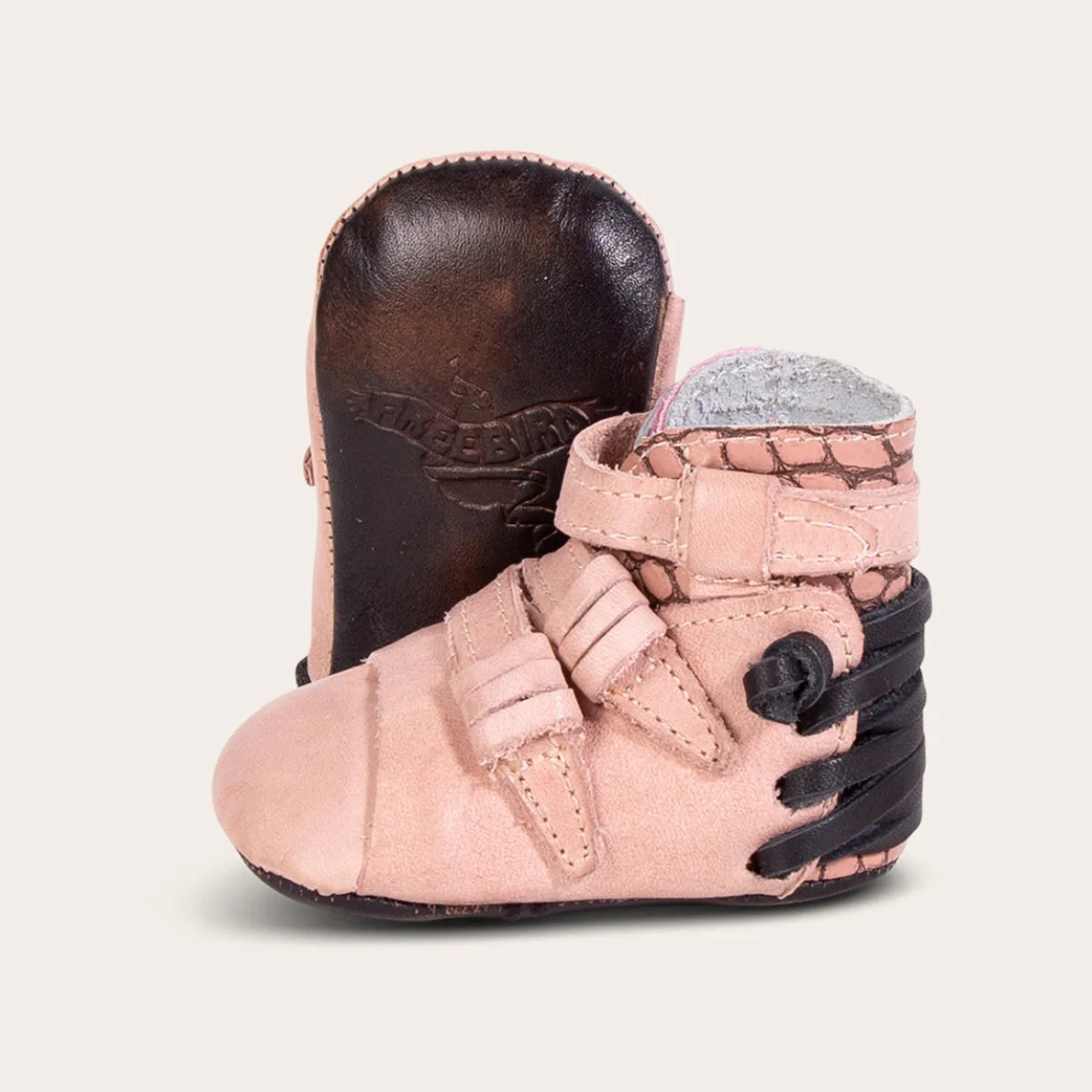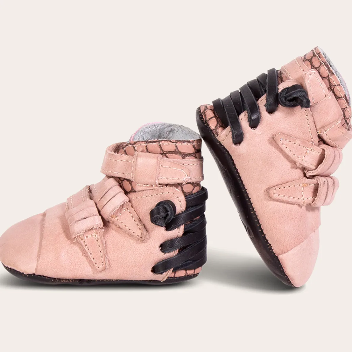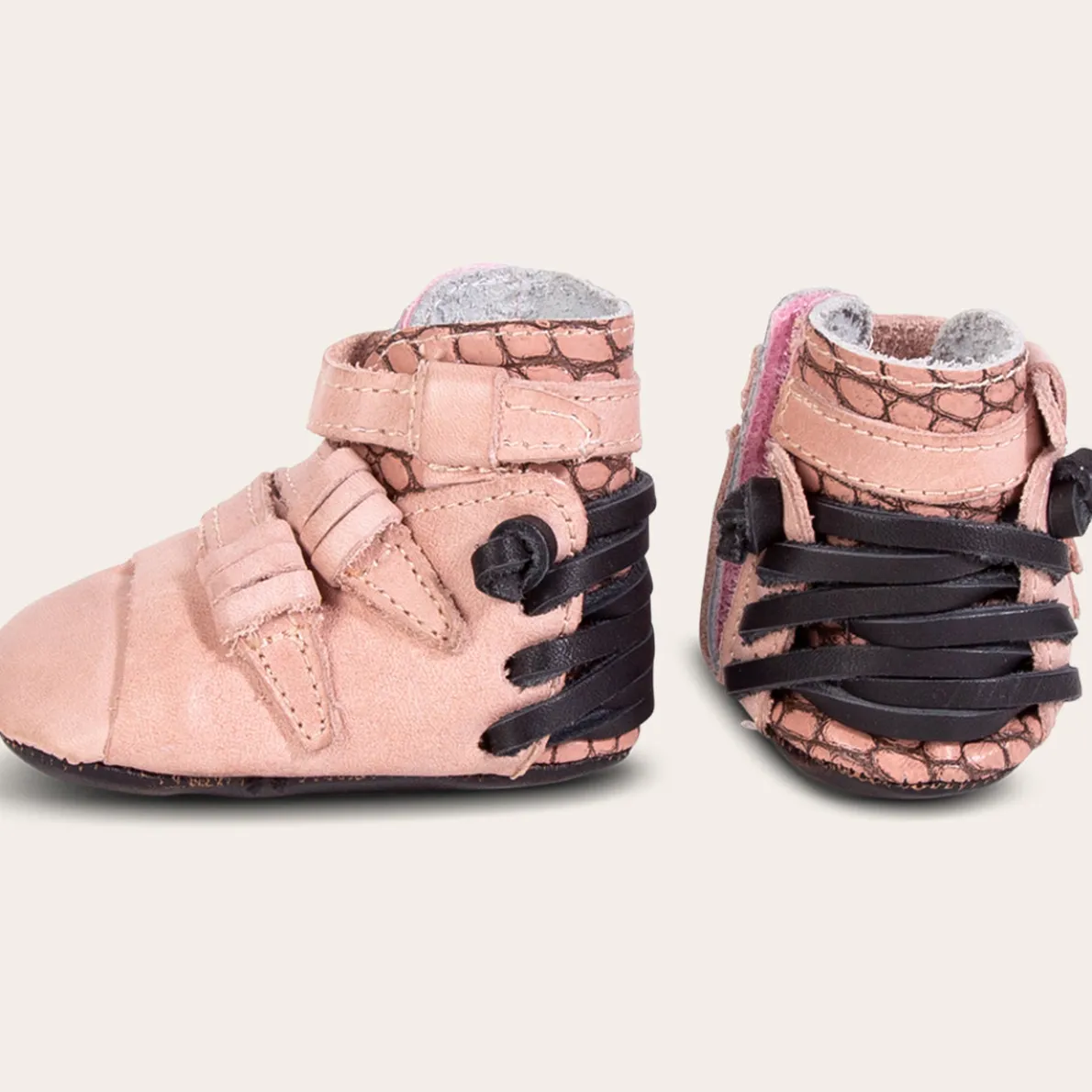 Make The Whole Daycare Stop And Stare In The Baby Crue. This Bootie Is Detailed With A Lace-Up Back And Overlaying Leather Straps. Designed With A Velcro Closure For A Hassle-Free Fastening, This Shoe Offers On-The-Go Convenience. Your Little One Is Sure To Take Their First Steps In Style.