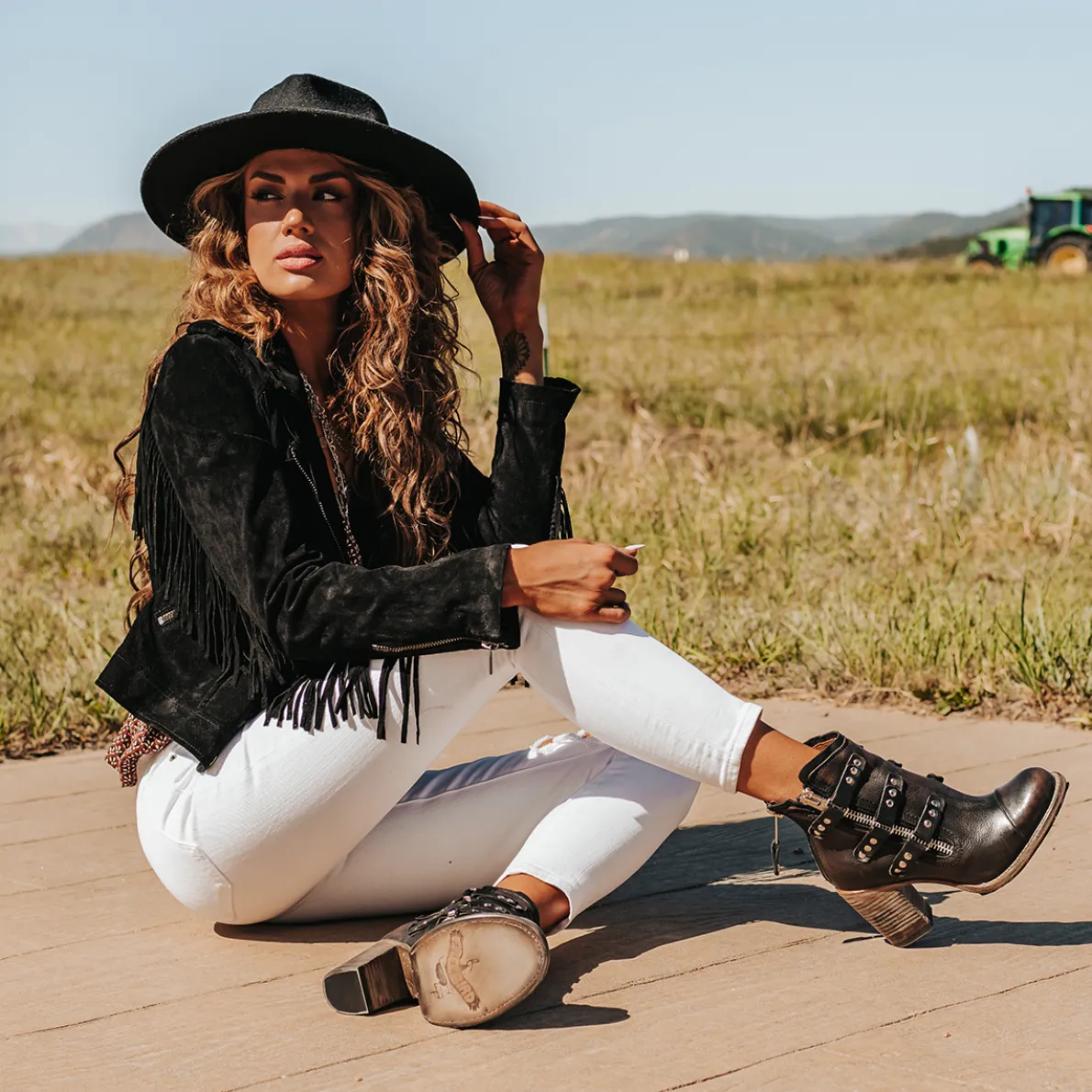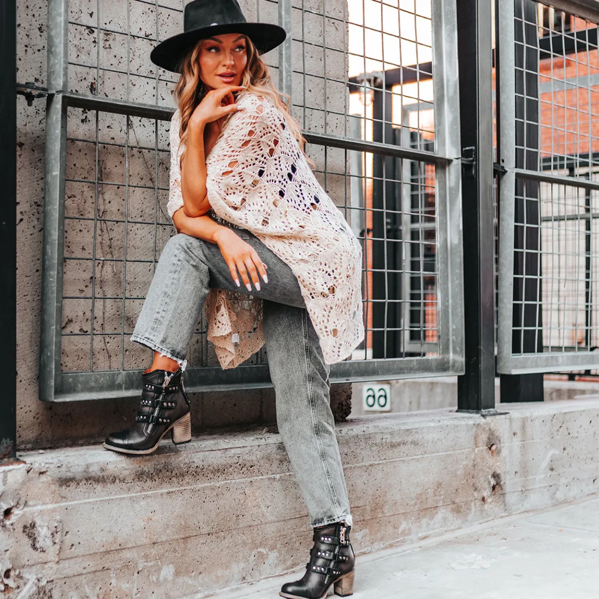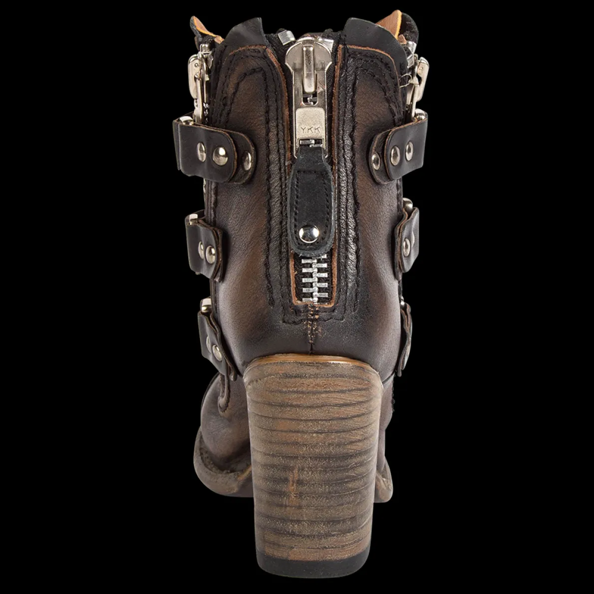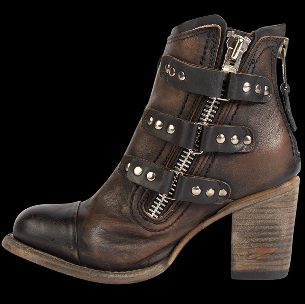 Find The Perfect Stride In Beckett. This Leather Ankle Bootie Features Symmetrical Embellished Straps, Round Toe, And Working Back Zip Closure. Completed With A Stacked Wooden Heel, Beckett Is A Stylish, Yet Functional Statement. Leather Upper, Leather Lining, Leather Sole Handcrafted In Mexico 3 ¼” Heel Height 5″Shaft Height 11½” Shaft Circumference Measurements Taken From Us Size 8