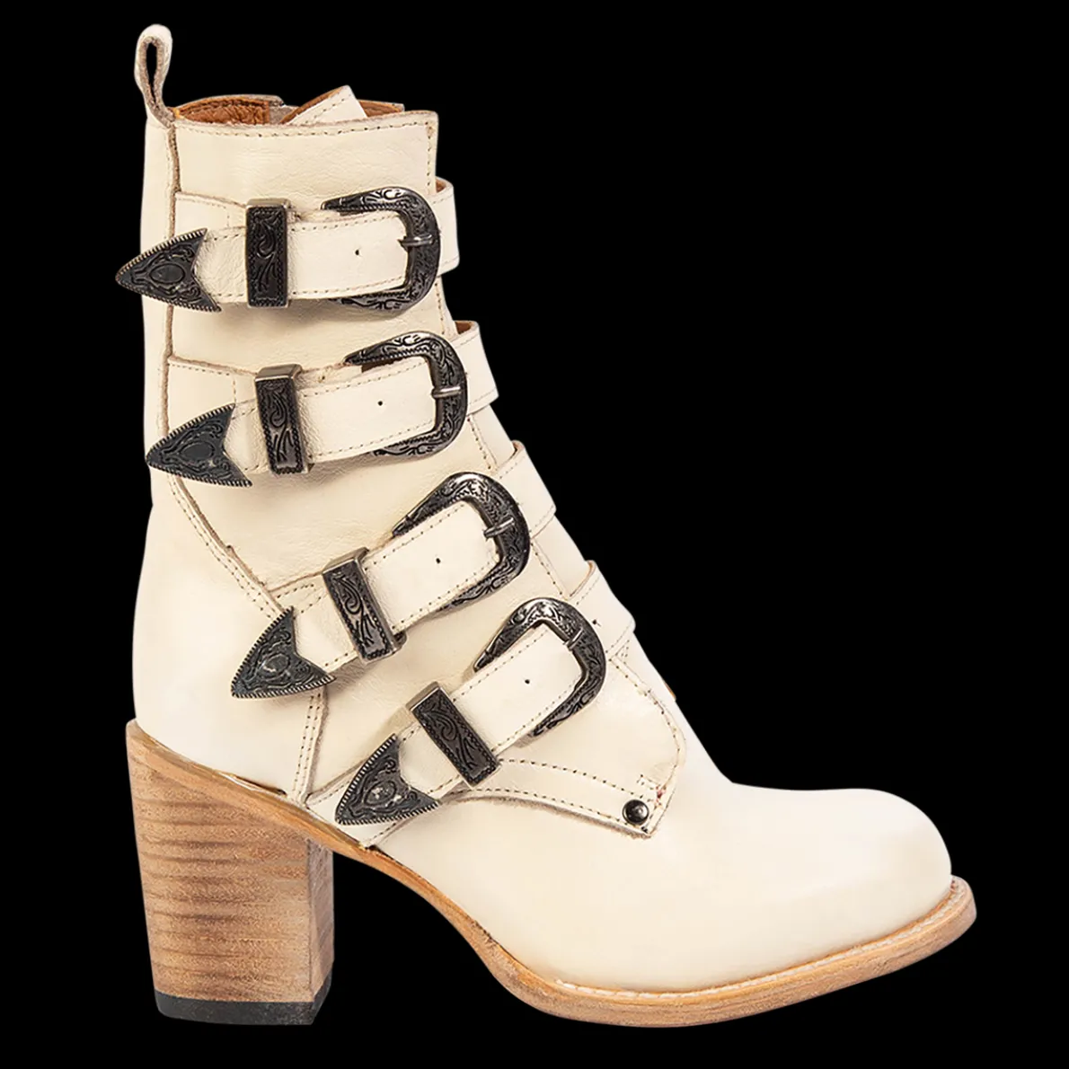 Western Flair Is Found Within The Four Engraved Metal Buckles Making Belladonna The Ultimate Eye-Catcher.An Inside Zip Closure And Back Pull Strap Allow For Ease Of Wear While Theelevated Heel Pushes This Bootie To The Next Level.