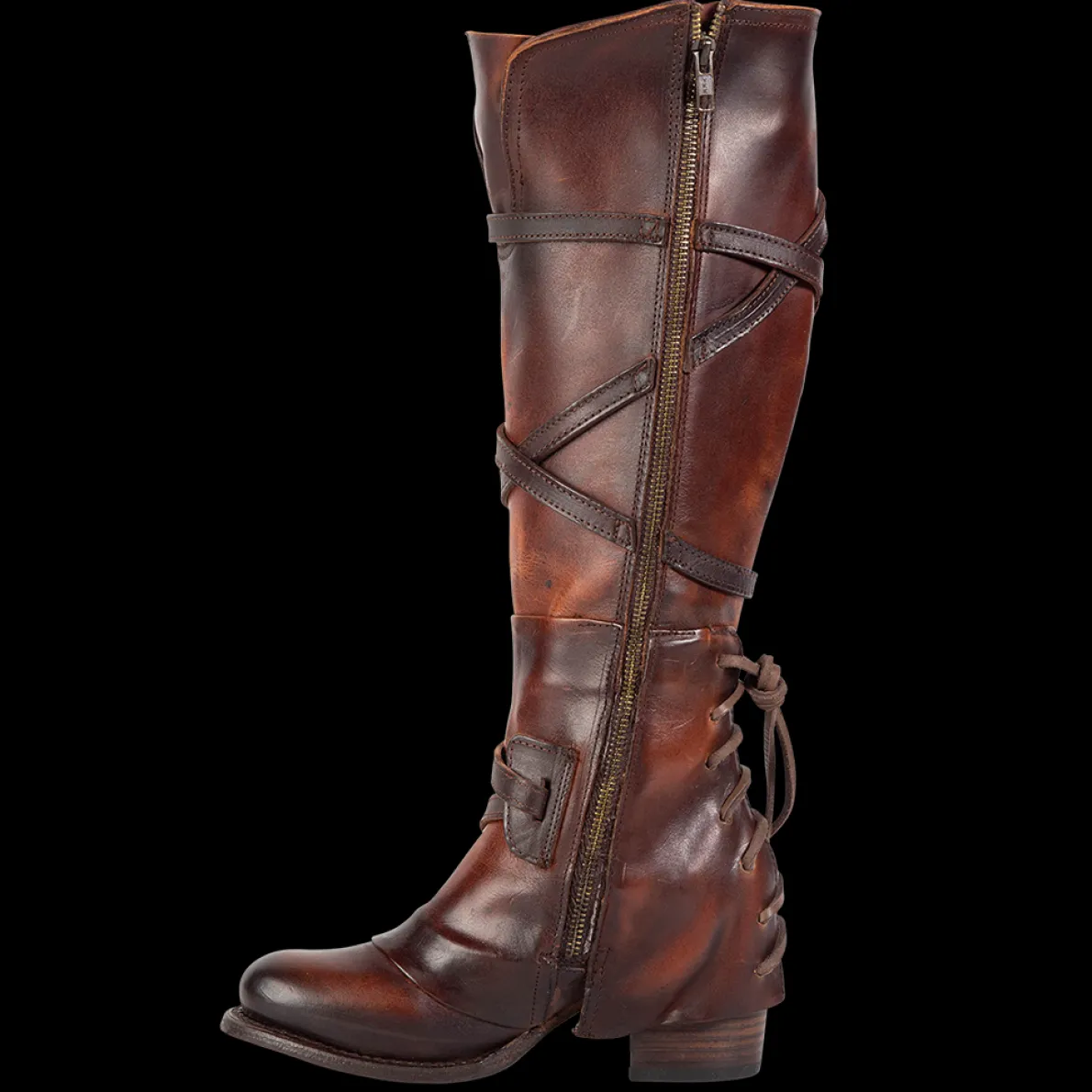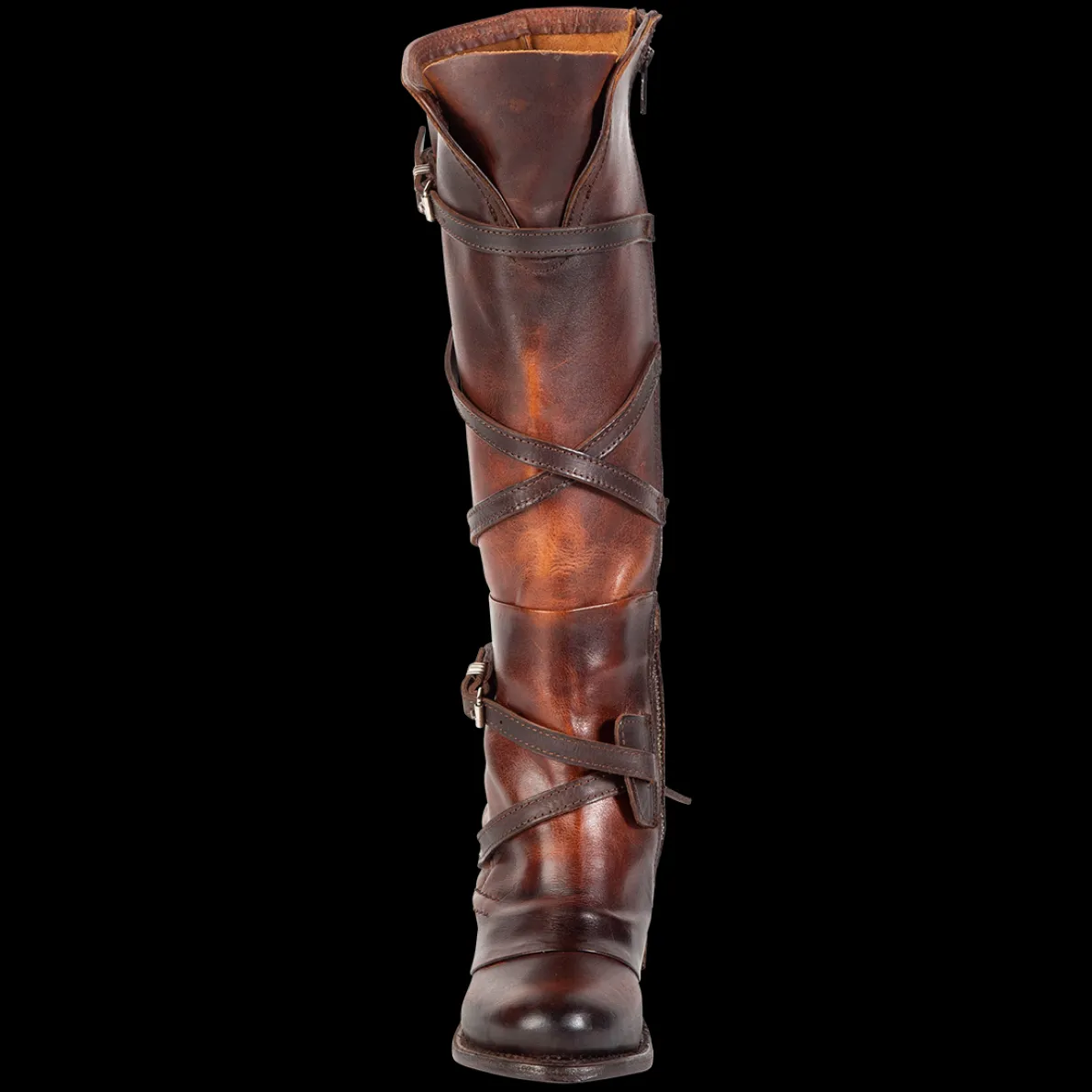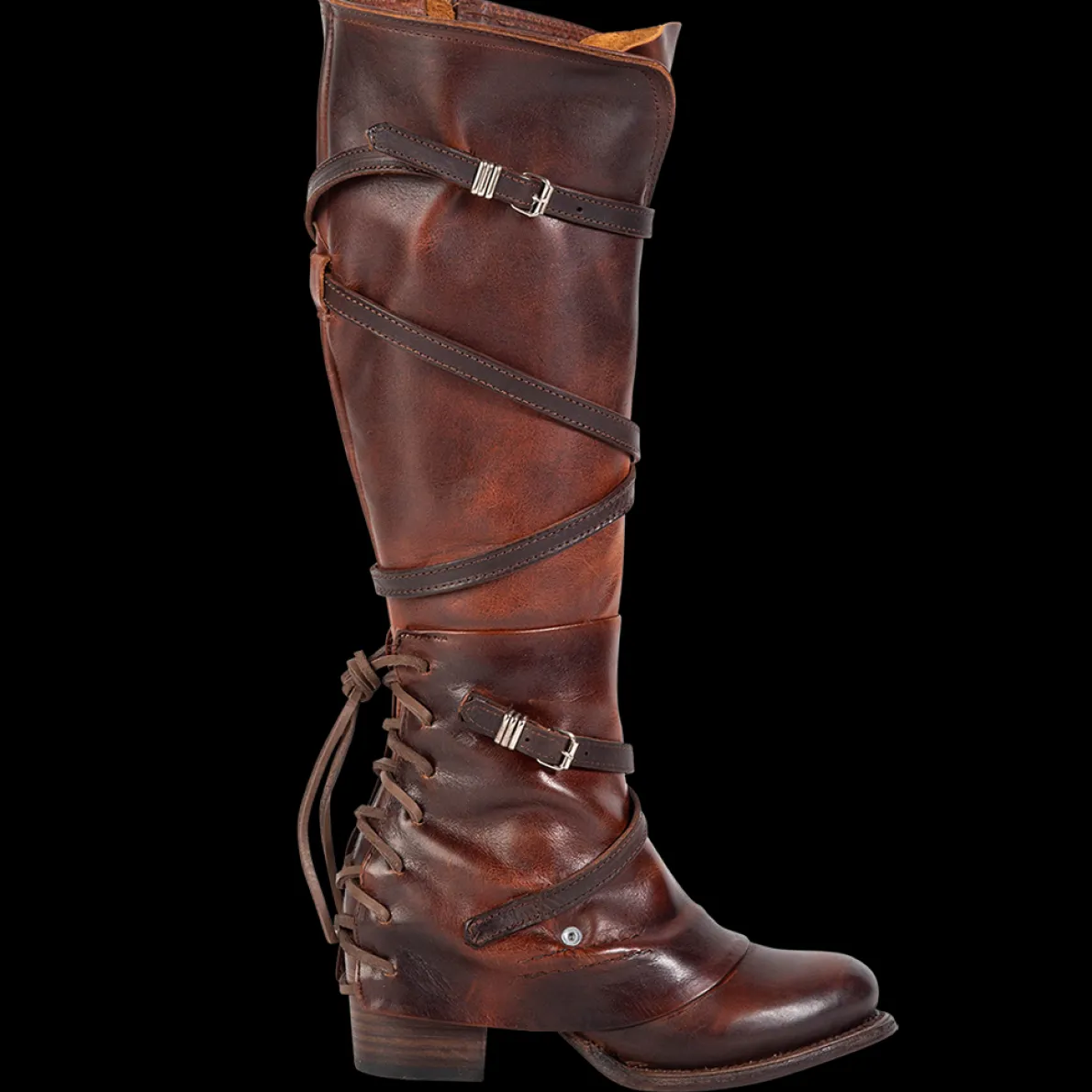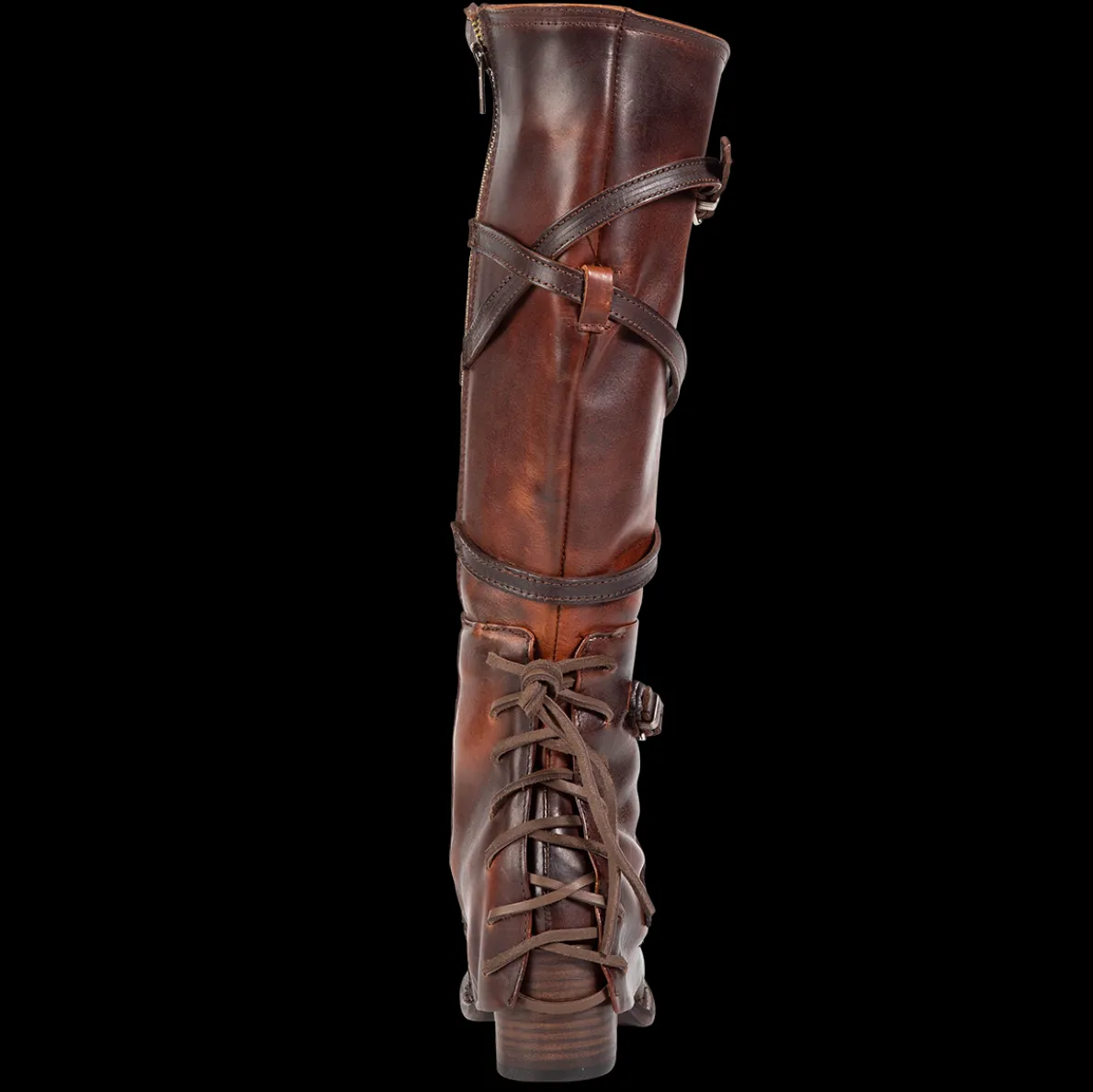 Meet Cassius, An Eye-Catching Addition To Your Collection. Its Unique Back-Lacing Ankle Overlay Is Complemented By Stunning Leather Straps And Silver Buckles That Wrap Its Tall Shaft. A Full Inside Brass Zip Closure Allows For Effortless Wear. Leather Upper, Leather Lining, Leather Sole Handcraftedin Mexico 2 ½”Heel Height 16½”Shaft Height 15 ¾” Shaft Circumference Measurements Taken From Us Size 8