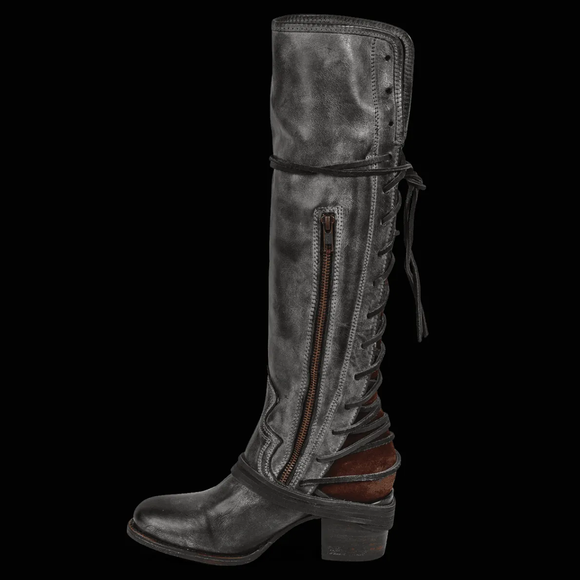 The Coal: Our Most Loved Tall Boot. An All-Season Favorite With Wrapped Leather Detailing, An Expandable Back Lacing Panel, And An Inside Brass Zip Closure. Accentuate The Coal With A Side Slit Maxi Dress Or Pair With A Chunky Sweater For A Cozy Look. Leather Upper, Leather Lining, Leather Sole Handcraftedin Mexico 2 ½”Heel Height 17″Shaft Height 18″ Expandable Shaft Circumference Measurements Taken From Us Size 8