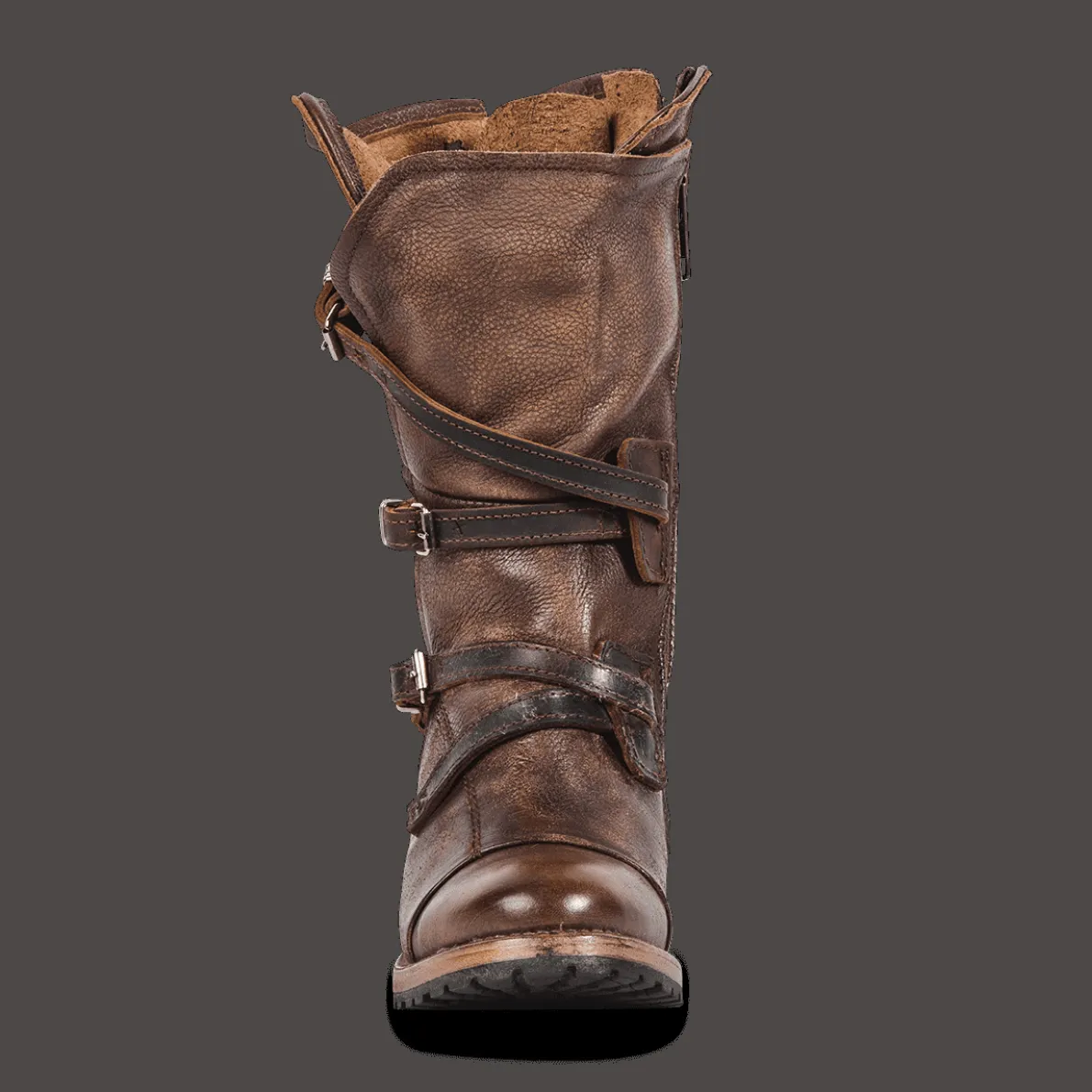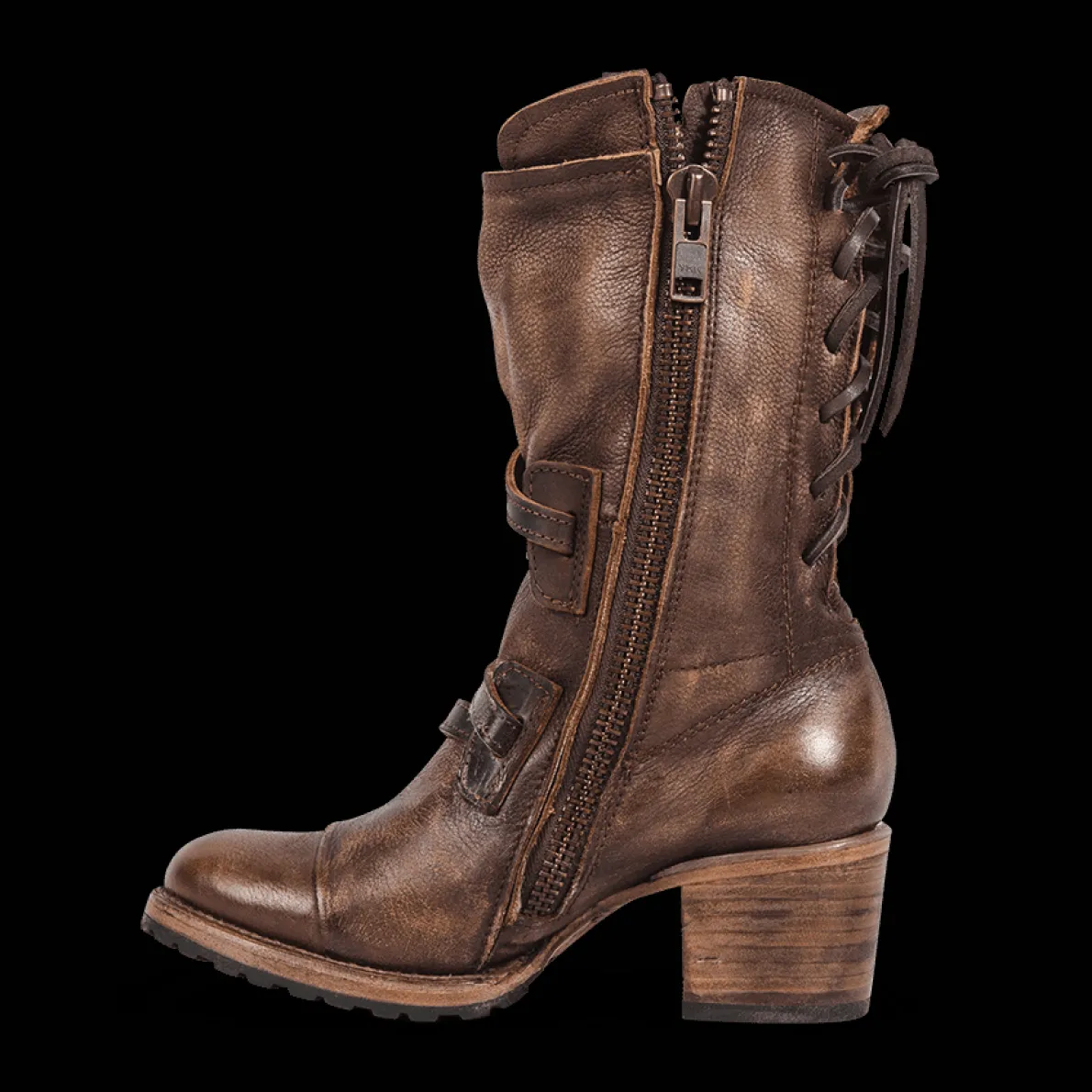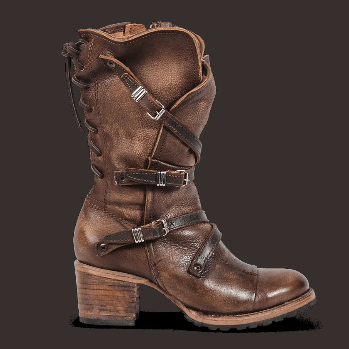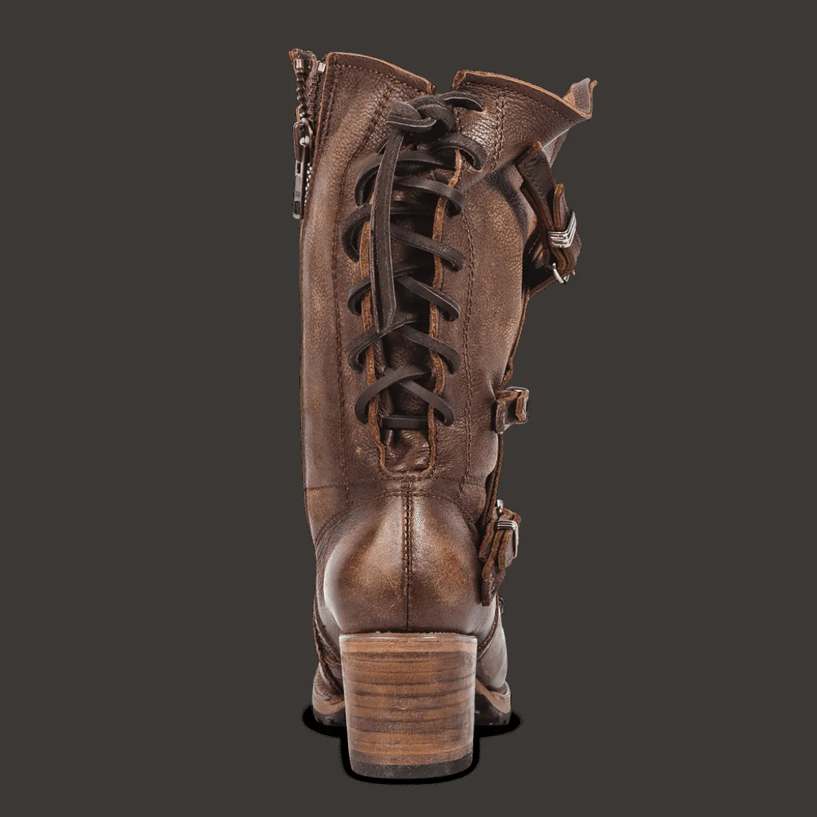 Imagine Looking Good From All Angles. Designed With A Slouchy Silhouette, Cora Is Fun, Yet Functional With Its Inside Brass Zip Closure And Rubber Tread Sole. Its Overlapped Shaft Features Leather Straps With Adjustable Silver Buckles And A Back-Lacing Design. Comfortable And Unique, You Won’T Go Anywhere Without Your Cora. Leather Upper, Leather Lining, Rubber Tread Sole Handcrafted In Mexico 2½”Heel Height 9¾”Shaft Height 14″ Adjustable Shaft Circumference Measurements Taken From Us Size 8