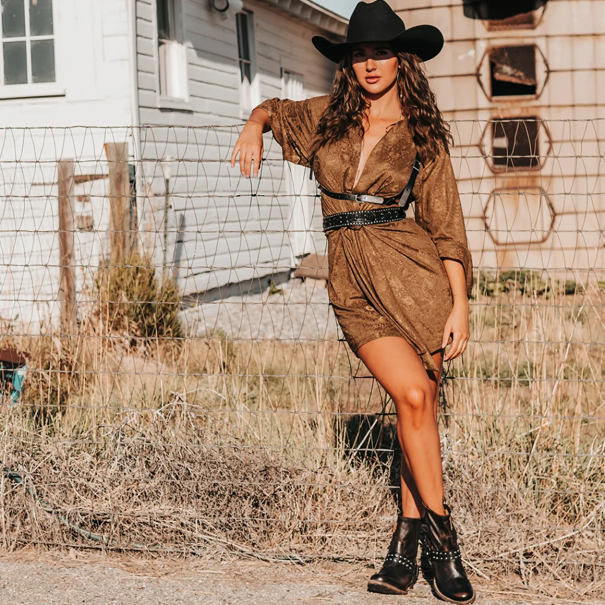 This Belt Is Unmatched With Its Stud Detailing And Criss-Crossing Leather Construction. Paired Perfectly With Rustic Hardware And Finished With A Double-Prong Buckle.Handcrafted In Mexico With 100% Full-Grain Leather. 1 ½”Strap Width 2 ¼”Buckle Height 40″ Full Belt Length 32″First Hole Measurement 36″Last Hole Measurement 1″ Spacing Between Holes Measurements Taken From Size Medium
