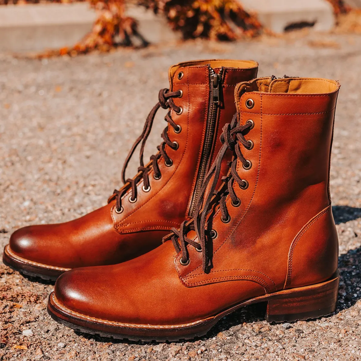 A New Type Of Classic – Denver. Constructed With A Goodyear Welt And Smooth Full-Grain Leather, This Front Lacing Boot Comes With Endless Options. Finished With A Brass Zip Closure And Rubber Tread Sole. Leather Upper, Leather Lining, Rubber Tread Sole Handcrafted In Mexico 1 ½”Heel Height 8 ½”Shaft Height 11″ FlexibleShaft Circumference Measurements Taken From Us Size 11