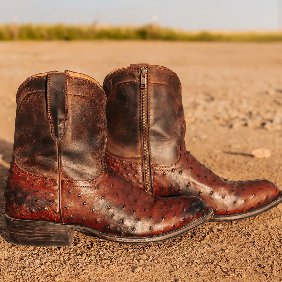 This Ain’T Our First Rodeo But Next Time You’Ll Be Wearingdesperado. Designed With Genuine Exotic Ostrich And Python Leathers, This Mid Calf Boot Hits Just Right.Featuring A Single Exterior Pull Strap And An Inside Working Brass Zip Closure. Leather Upper, Leather Lining,Leather Sole Made In Mexico 1½” Heel Height 7 ½” Shaft Height 12½” Shaft Circumference Measurements Taken From Us Size 11