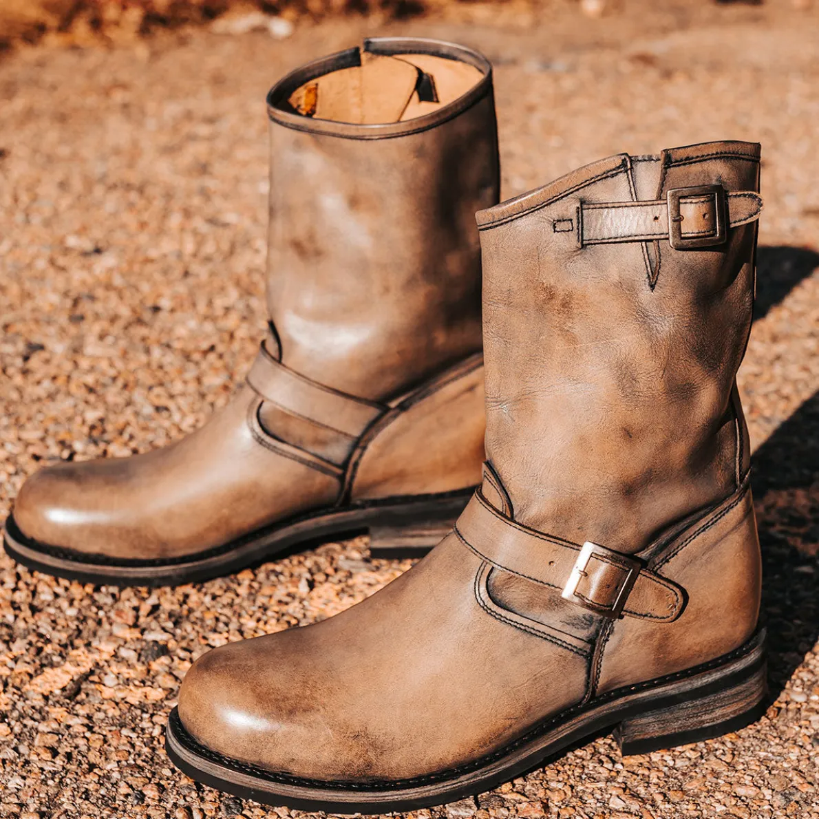 A Style Well Traveled, Easton Brings Durability With A Treaded Sole And Round Toe.This Full-Grain Leather Boot Is Combined With A Goodyear Welt And An Adjustable In-Step Strap, And Completed With Brass Hardware. Leather Upper, Leather Lining, Rubber Tread Sole Handcrafted In Mexico 1 ½”Heel Height 11 ¼”Shaft Height 14 ¾”Shaft Circumference Measurements Taken From Us Size 11