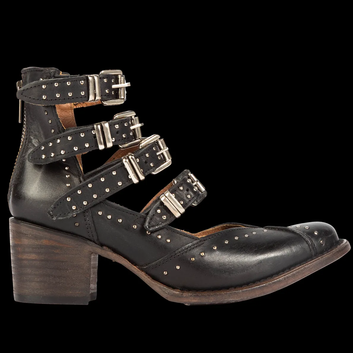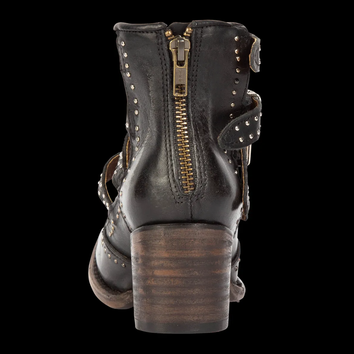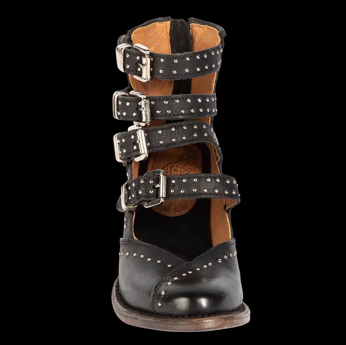 Felicity’s Elegant Western Structure Is Adorned With Silver Stud Embellished Leather And Adjustable Straps For The Perfect Customizable Fit. Finished With A Working Back Brass Zip And Almond Toe, This Open Construction Shoe Isready For Any Occasion. Leather Upper, Leather Lining, Leather Sole Handcraftedin Mexico 2¼”Heel Height 4¾” Shaft Height Adjustable Shaft Circumference Measurements Taken From Us Size 8