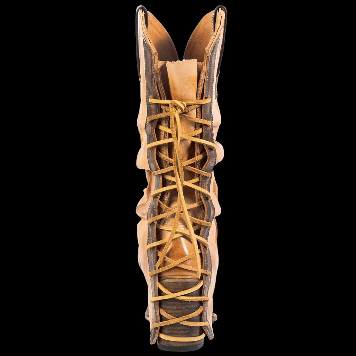 Designed With A Decorative Overlay, Jules Is Crafted With A Relaxed Silhouette And Features Anexpandable Contrasting Back Lace Panel. This Detailed Tall Boot Showcases A Pointed Toe With Traditional Stitching And Stands Upon An Elevated Flare Heel. Leather Upper, Leather Lining, Leather Sole Handcrafted In Mexico 3 ½”Heel Height 13 ¼”Shaft Height 18″ Adjustable Shaft Circumference Measurements Taken From Us Size 8