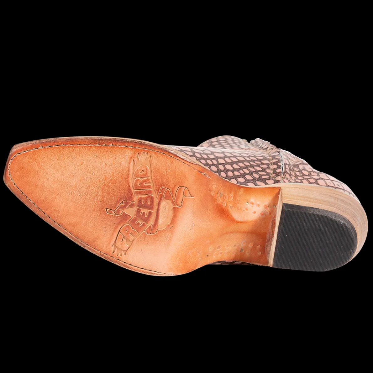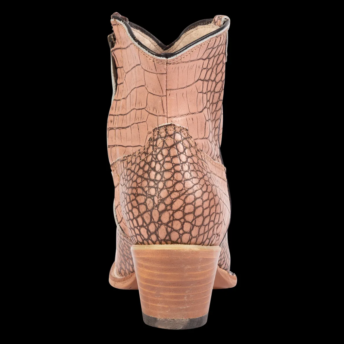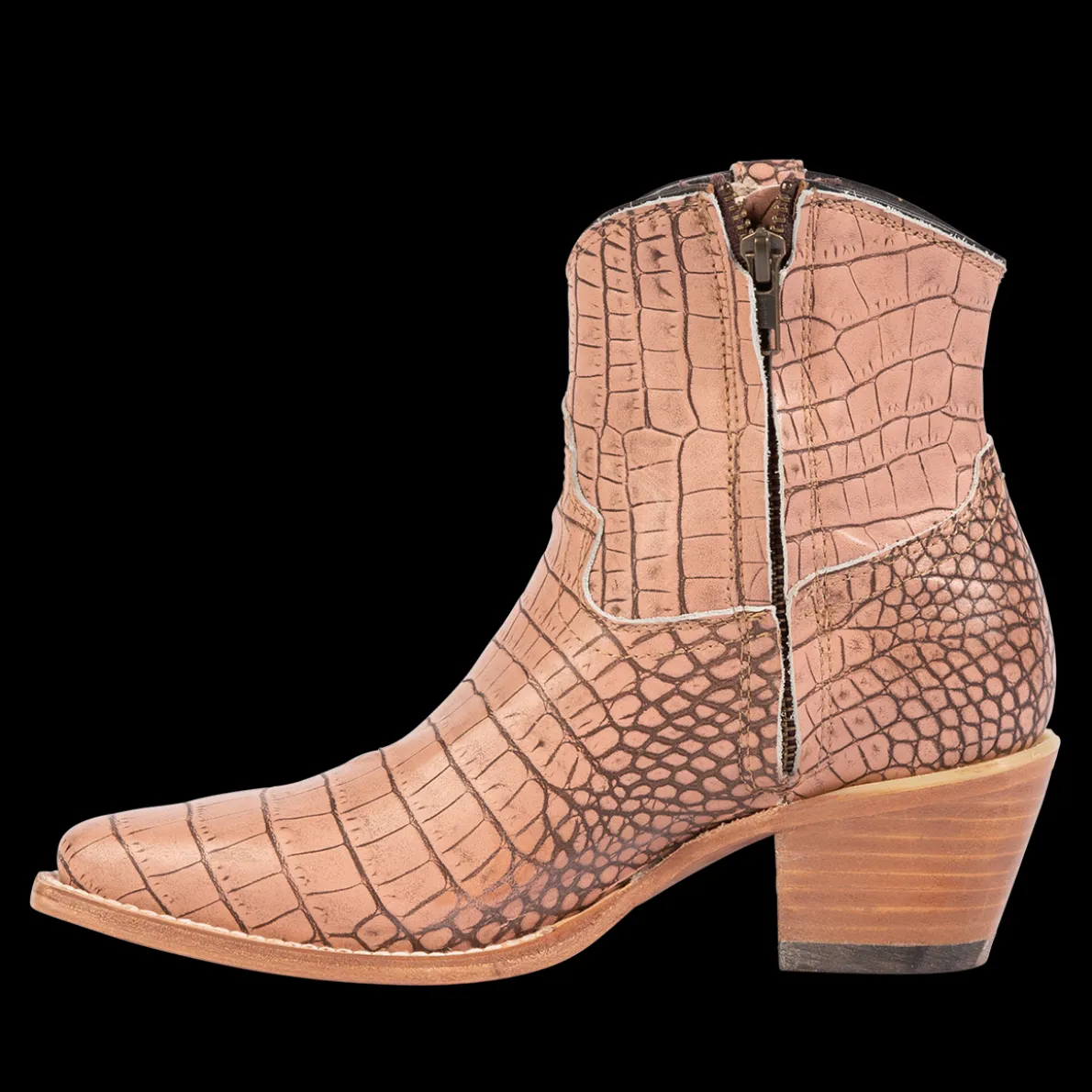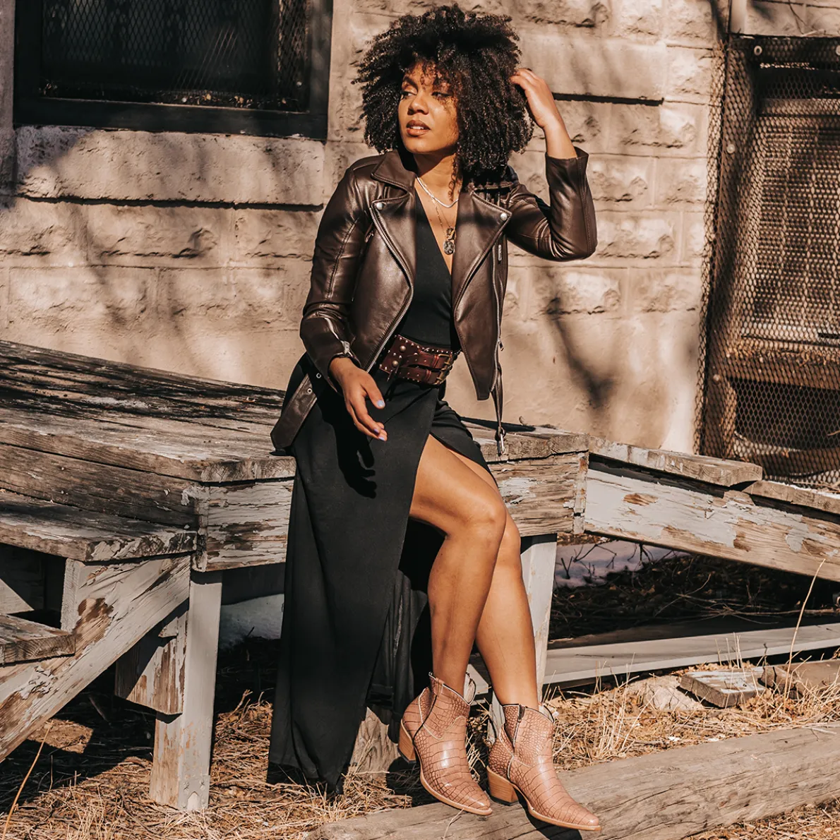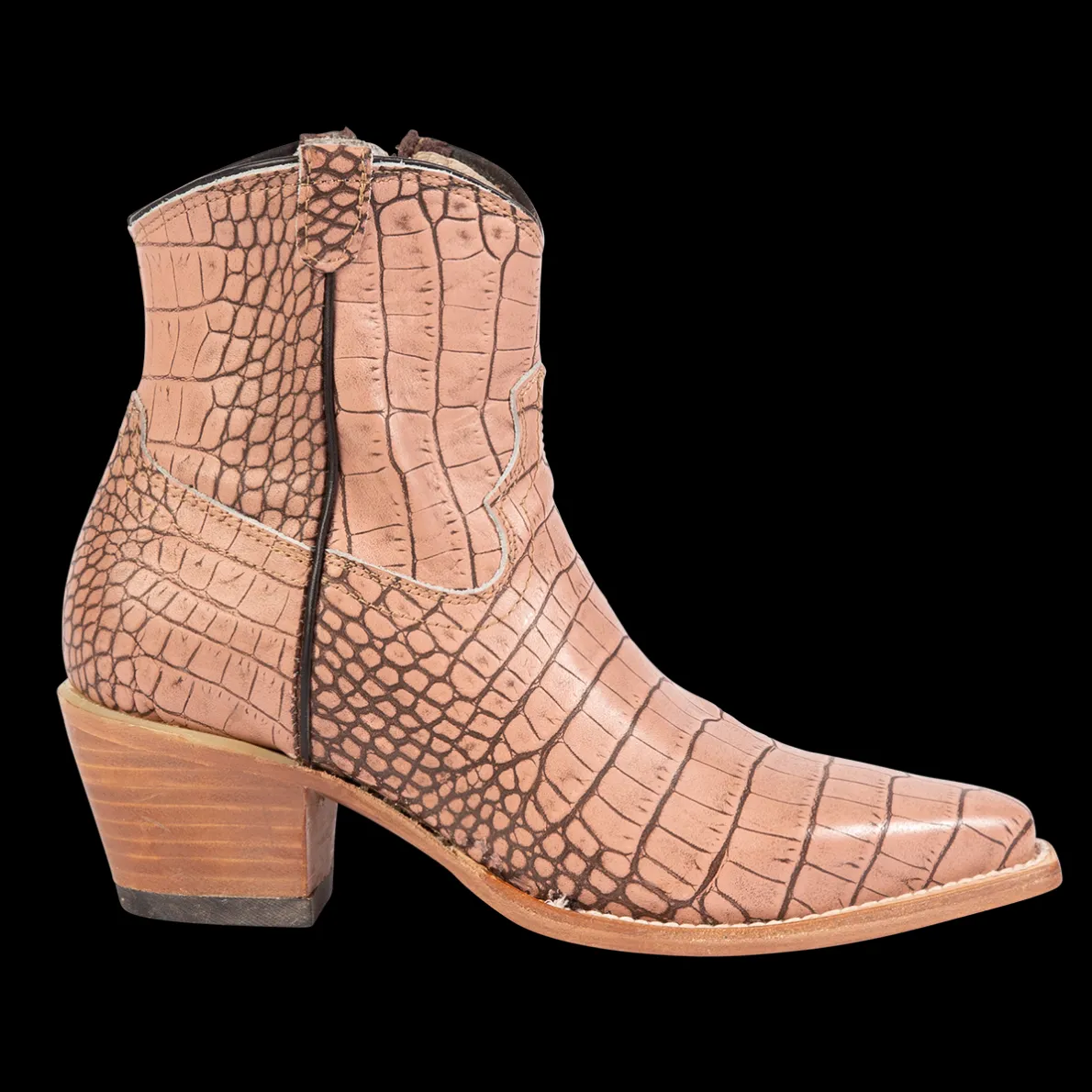 Welcome To The Wild West – Miramar. Constructed With A Western Silhouette, Thisstandoff Worthy Bootiesits On A Low Heel And Showcases A Traditional Snip Toe. Decorated In Embossed Leather And Finished With A Working Brass Zip Closure, Miramar Will Have Us All Shaking In Our Boots.