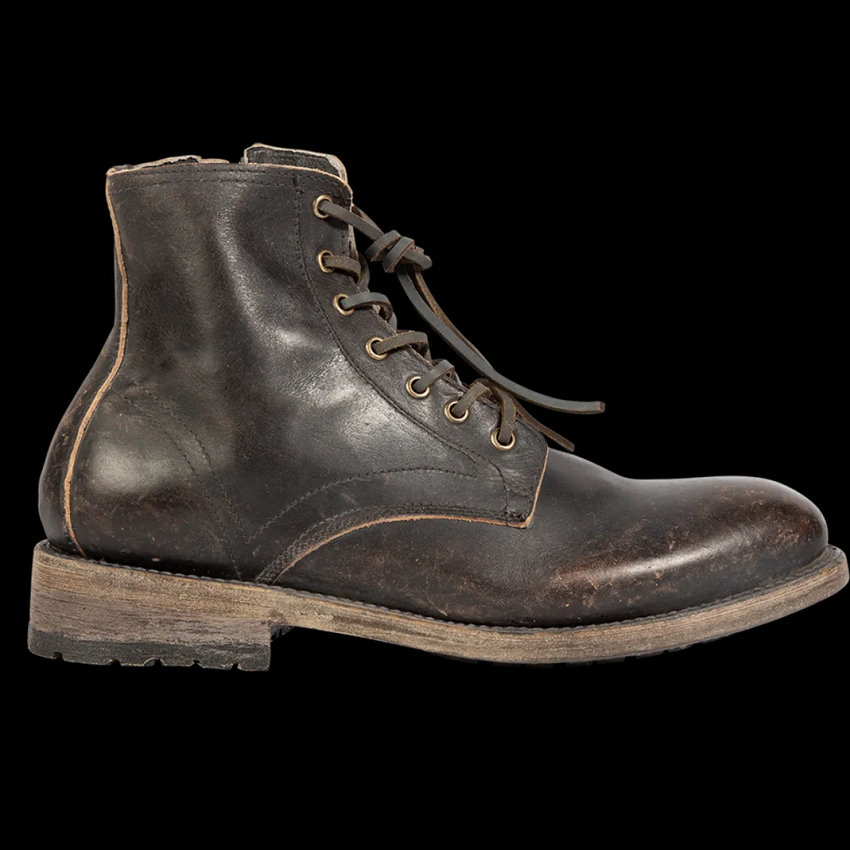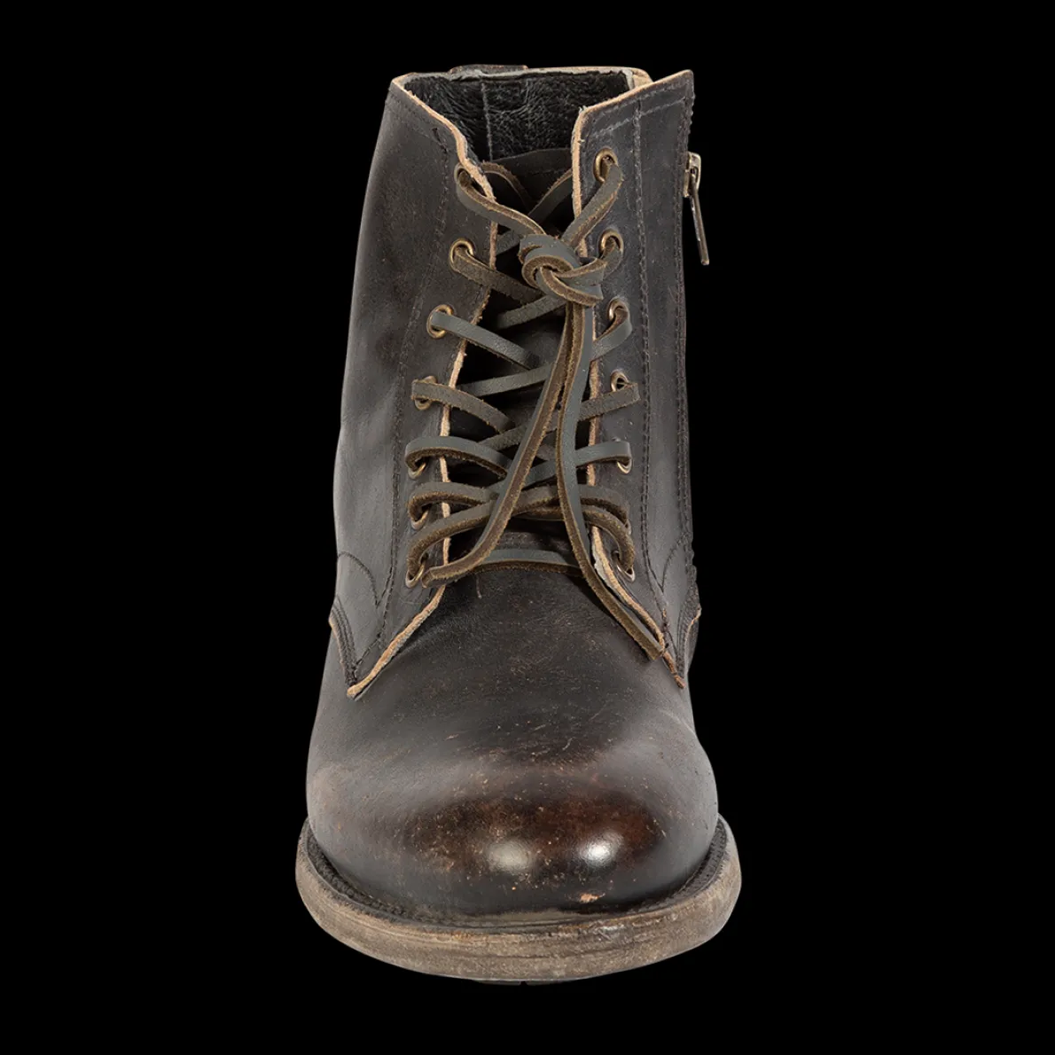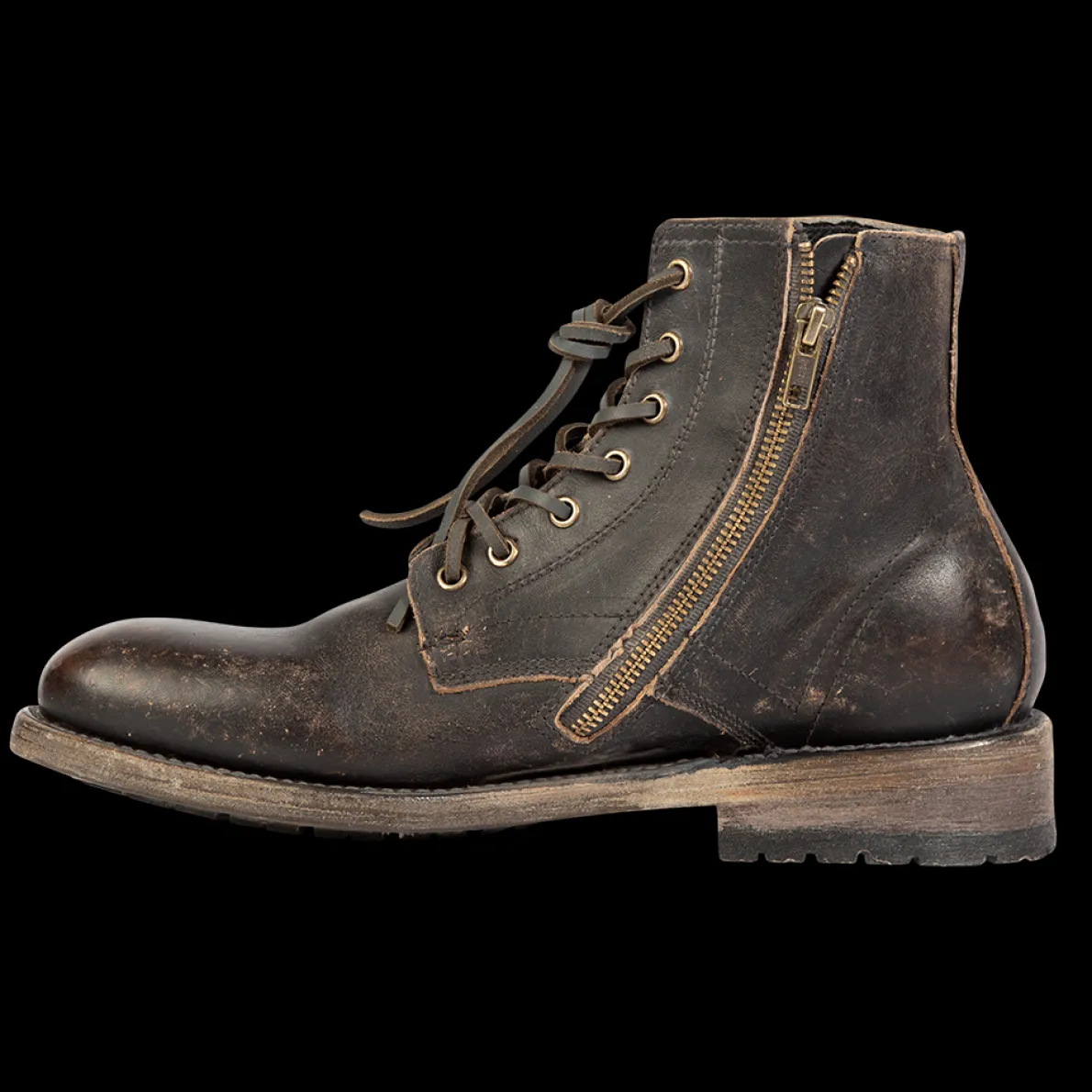 Pairing Classic Cool With Contemporary Edge – Pendleton. Constructed On A Low Heel, This Distressed Leather Boot Is The Perfect Balance Of Strength Andstyle With A Brass Zip Closure, Customizable Leather Lacing, And Almond Toe.
