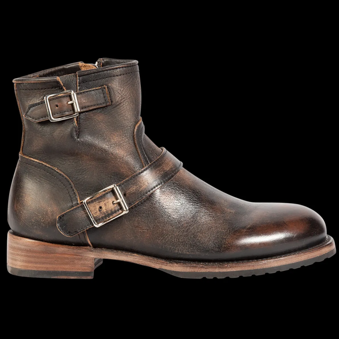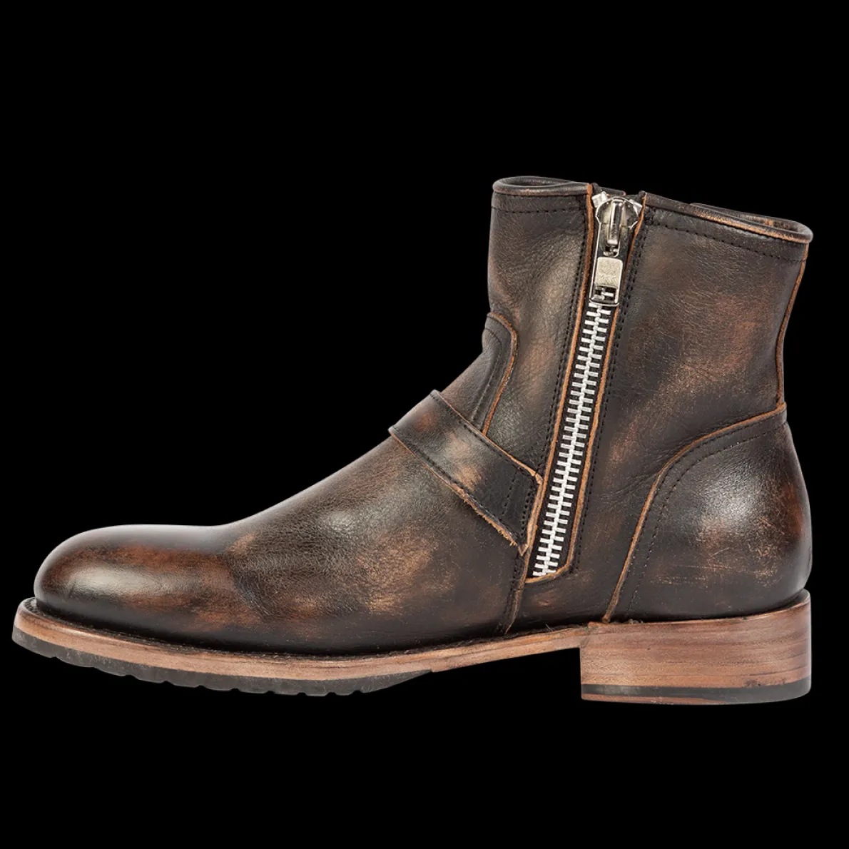 Railroad, Just The Ticket This Round Toe Utility Boot Is Handcrafted With 100% Full-Grain Leather And A Loose Profile For A Comfortable Fit. Featuring Two Adjustable Leather Straps And Working Inside Zip Closure For Ease Of Wear.