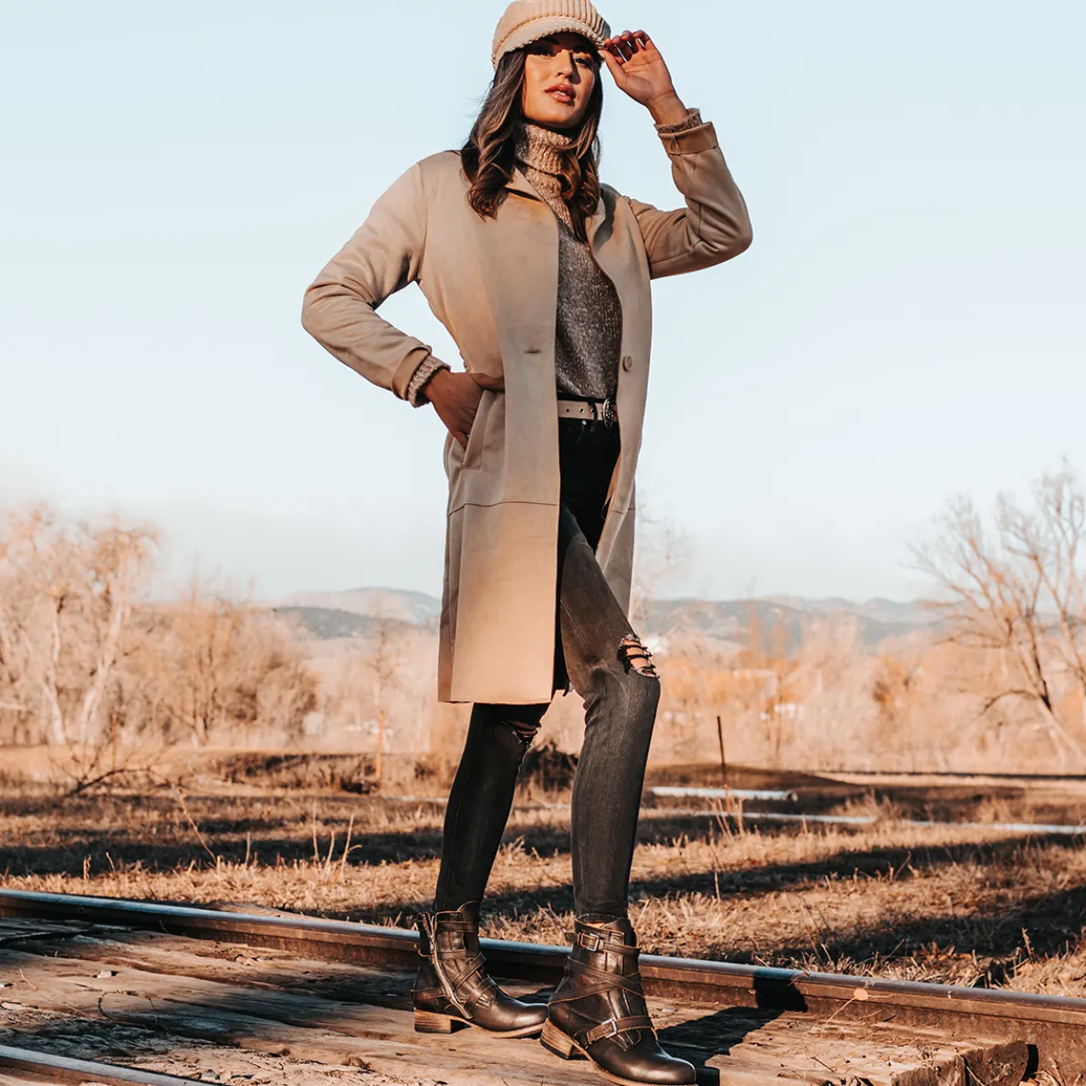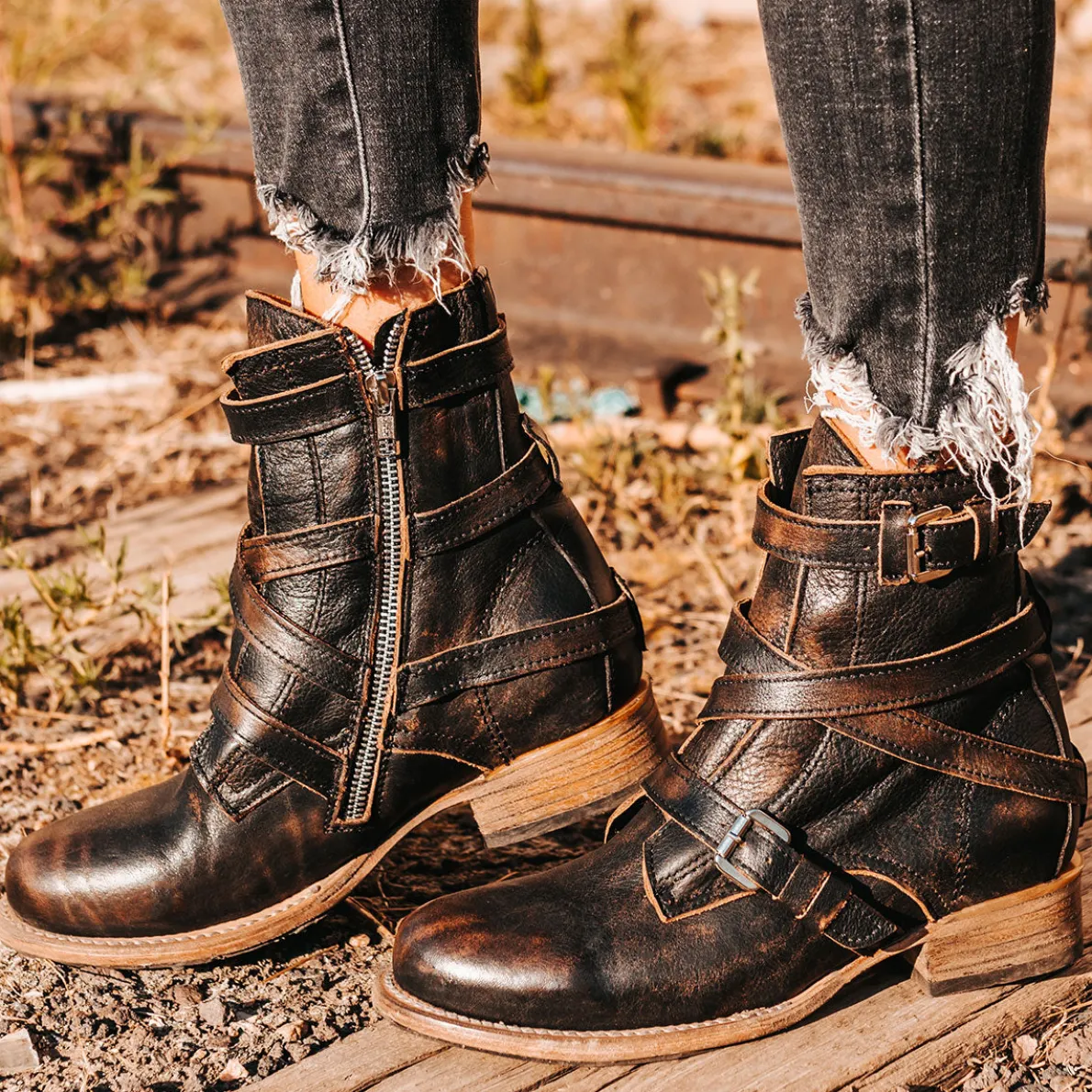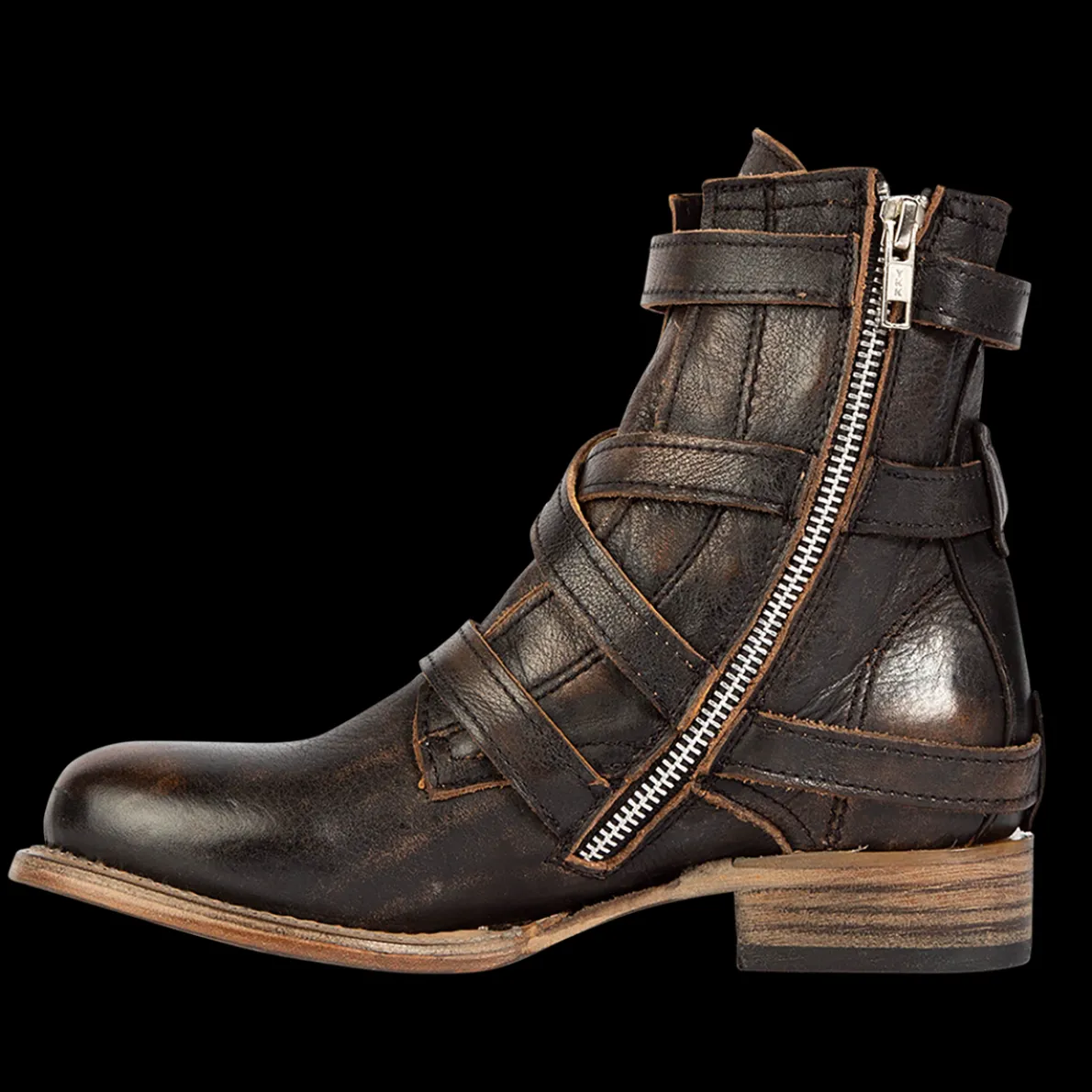 Raine – The Ruler Of Ultimate Comfort. Constructedwith Astacked Wooden Heel, Round Toe, And Inside Zip Closure Making For Ease Of Wear. This Bootie Is Detailed With An Overlapped Shaft And Includes Adjustable Buckle Straps For A More Customizable Fit.