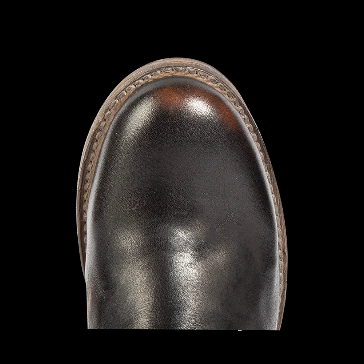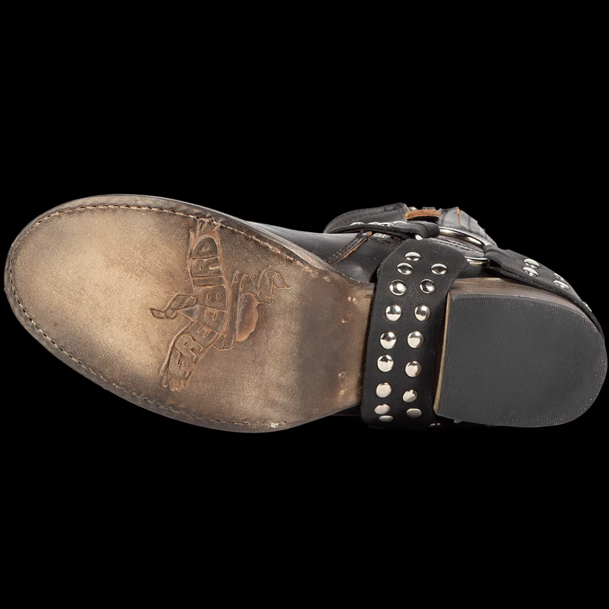 Ramone Is “Wanted” For Beingbold And Rebellious. This Full-Grain Leather Ankle Bootie Is Constructed Witha Western Shaft Crown, An Inside Zip Closure, And Paired With An Outside Welt. Finished With An Embellished Harness, Making Ramone A High Reward Item.