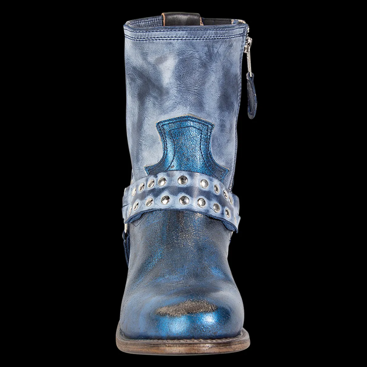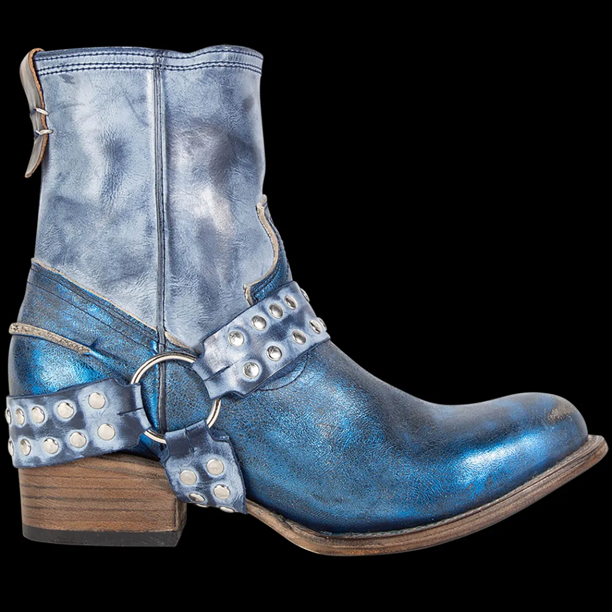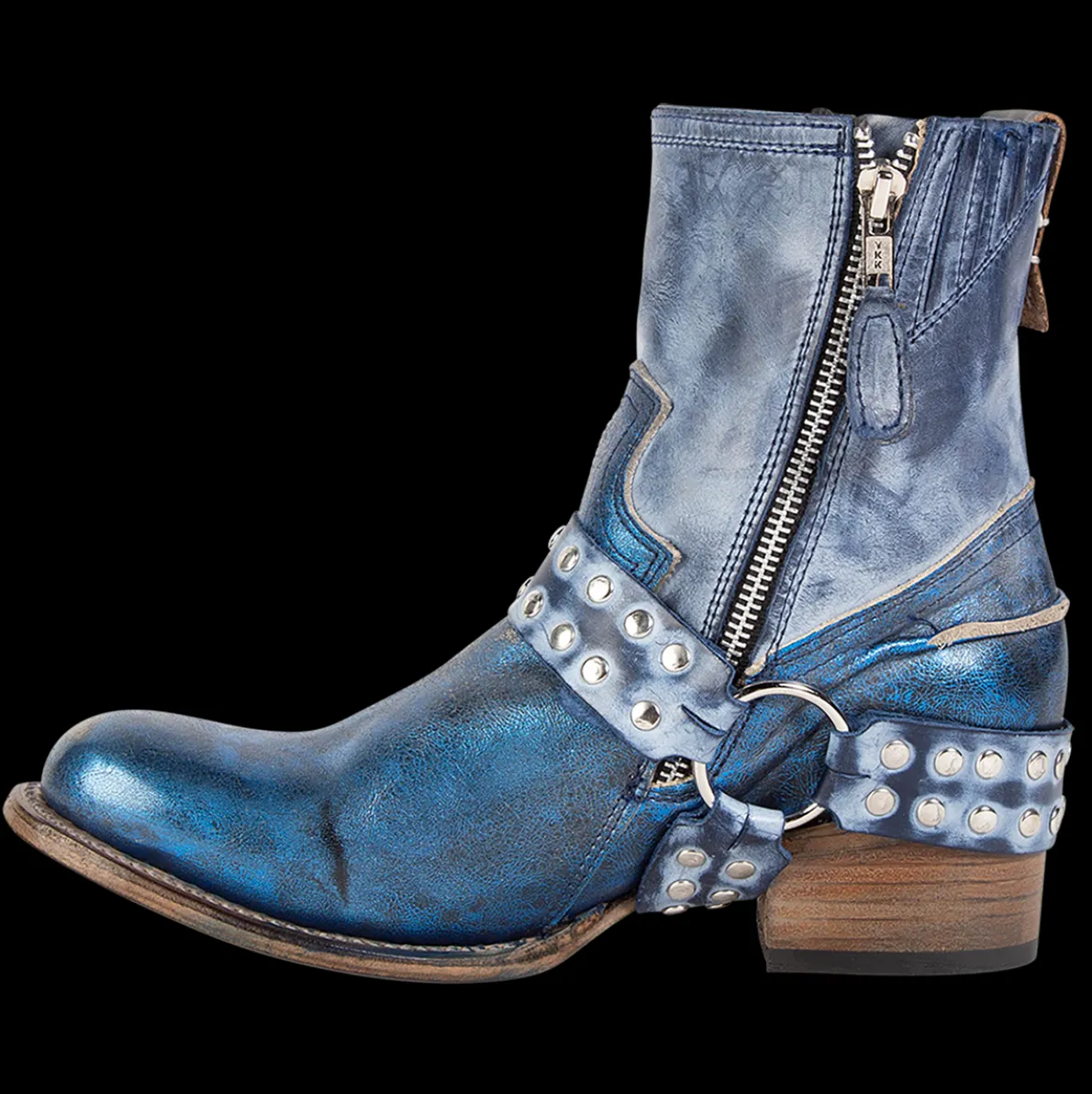 Ramone Is “Wanted” For Beingbold And Rebellious. This Full-Grain Leather Ankle Bootie Is Constructed Witha Western Shaft Crown, An Inside Zip Closure, And Paired With An Outside Welt. Finished With An Embellished Harness, Making Ramone A High Reward Item.
