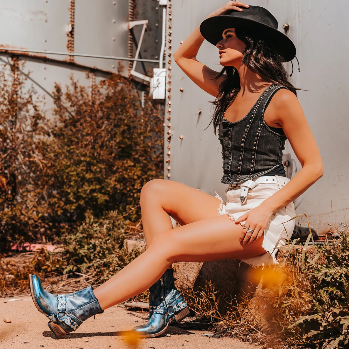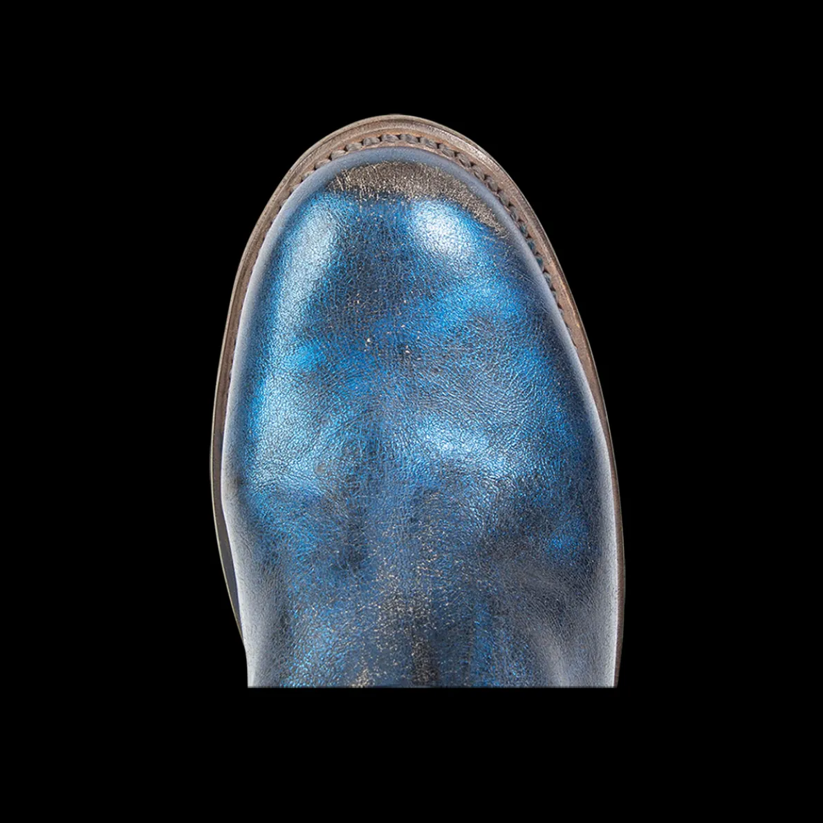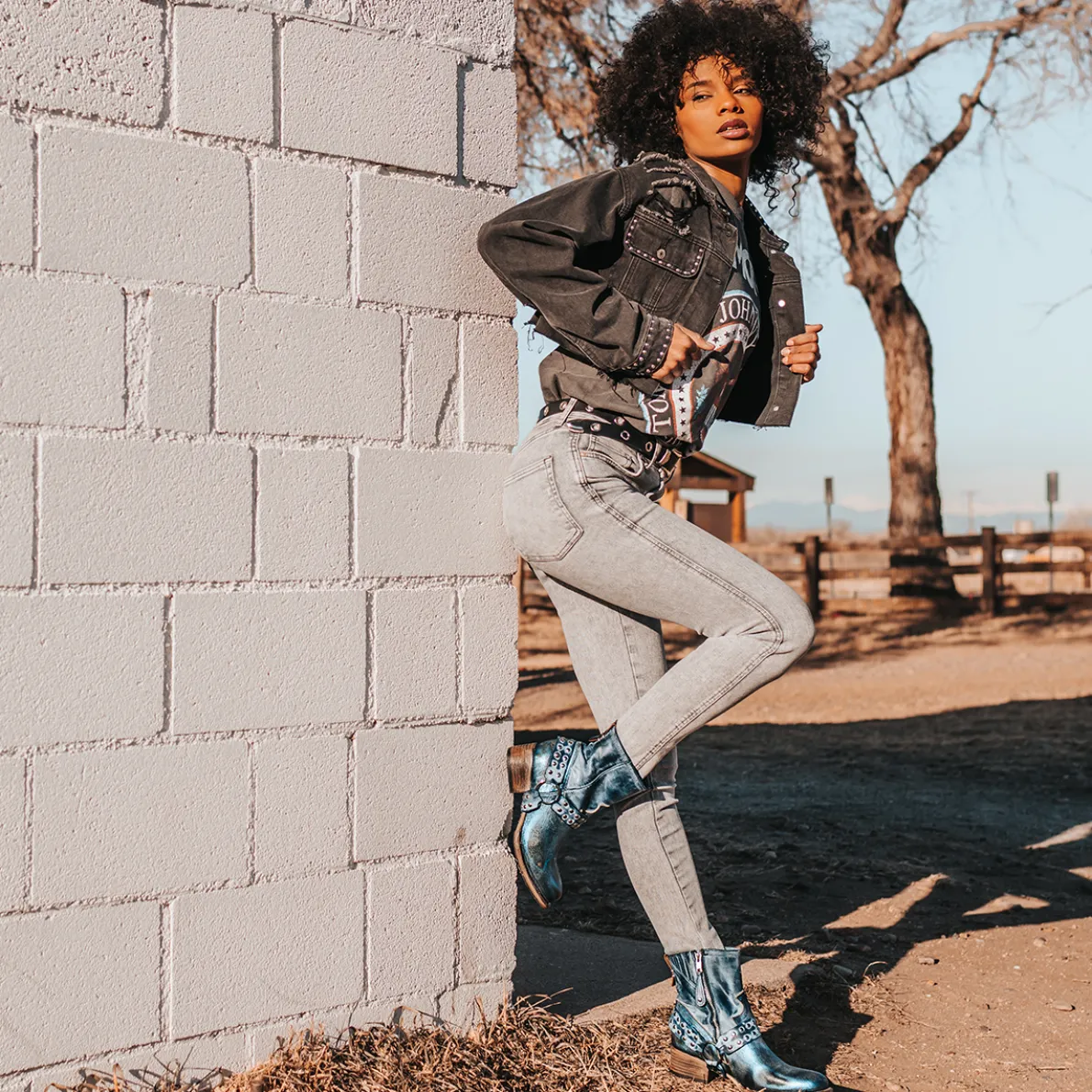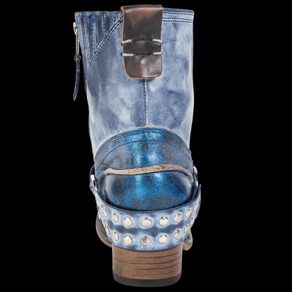 Ramone Is “Wanted” For Beingbold And Rebellious. This Full-Grain Leather Ankle Bootie Is Constructed Witha Western Shaft Crown, An Inside Zip Closure, And Paired With An Outside Welt. Finished With An Embellished Harness, Making Ramone A High Reward Item.