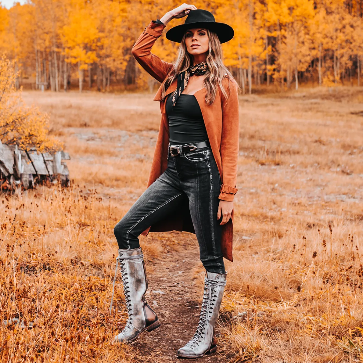 Meet Our Take On A Classic Lace Up Boot – Raphael. Crafted With An Adjustable Front Shaft Detailing, Metal Hardware, And A Working Back Zip Closure. This Boot Bridges The Gap Between Comfort And Edge Perfectly. Leather Upper, Leather Lining,Leather Sole Handcraftedin Mexico 1 ¼”Heel Height 15 ½”Shaft Height Expandable Shaft Circumference Measurements Taken From Us Size 8