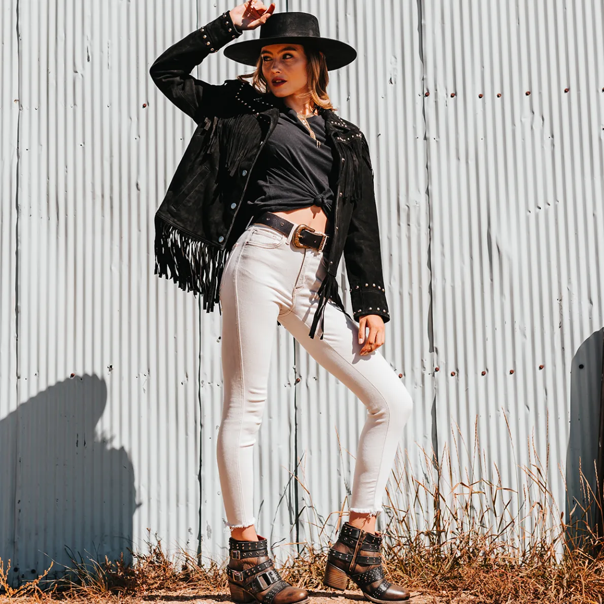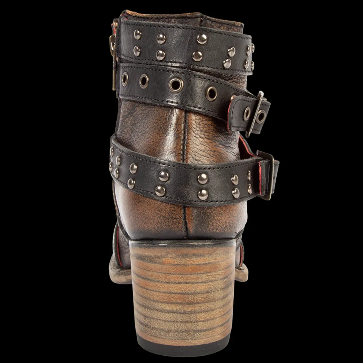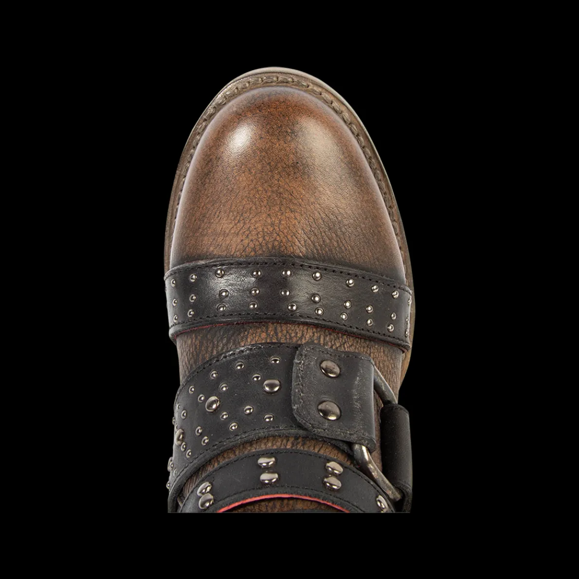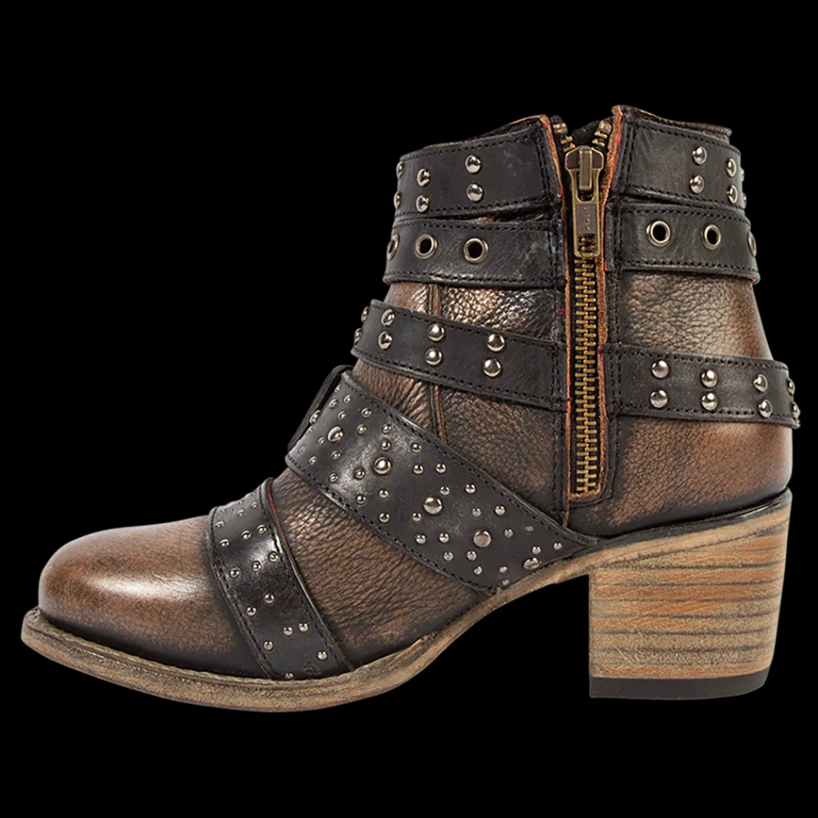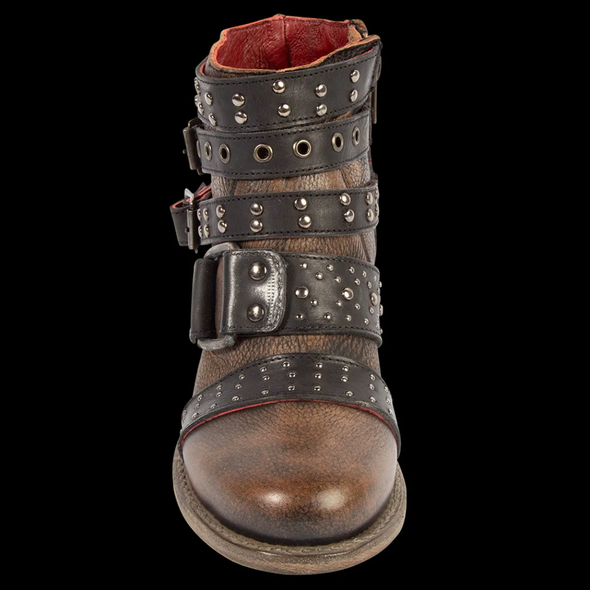 Adorned With Silver-Toned Studs And A Trio Of Buckles Straps, Slayer Demands Attention. Handcrafted With Contrasting Hues And Rendered With A Low Profile, This Ankle Bootie Strikes A Rebellious Nature.