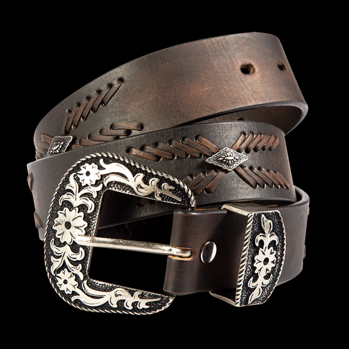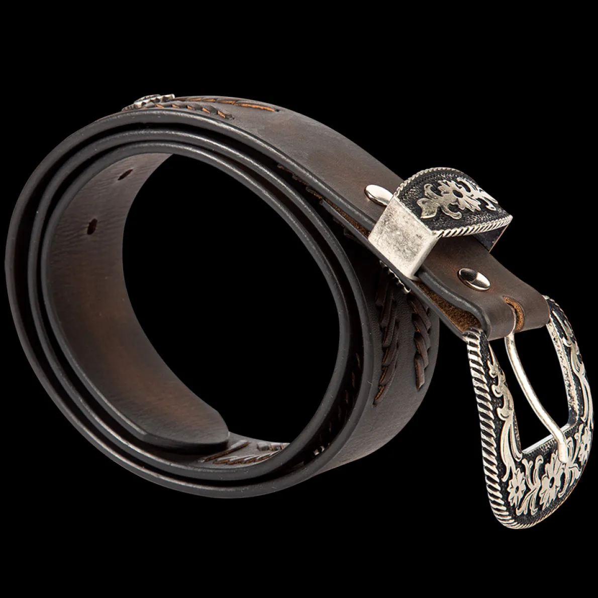 We Are Headed Westbound And Don’T Want To Leave. This Leather Belt Features Embroidered Leather Detailing And Engraved Hardware For A Western-Inspired Look. Handcrafted In Mexico With 100% Full-Grain Leather. 1 ½”Strap Width 2½”Buckle Height 40″ Full Belt Length 32″First Hole Measurement 36″Last Hole Measurement 1″ Spacing Between Holes Measurements Taken From Size Medium