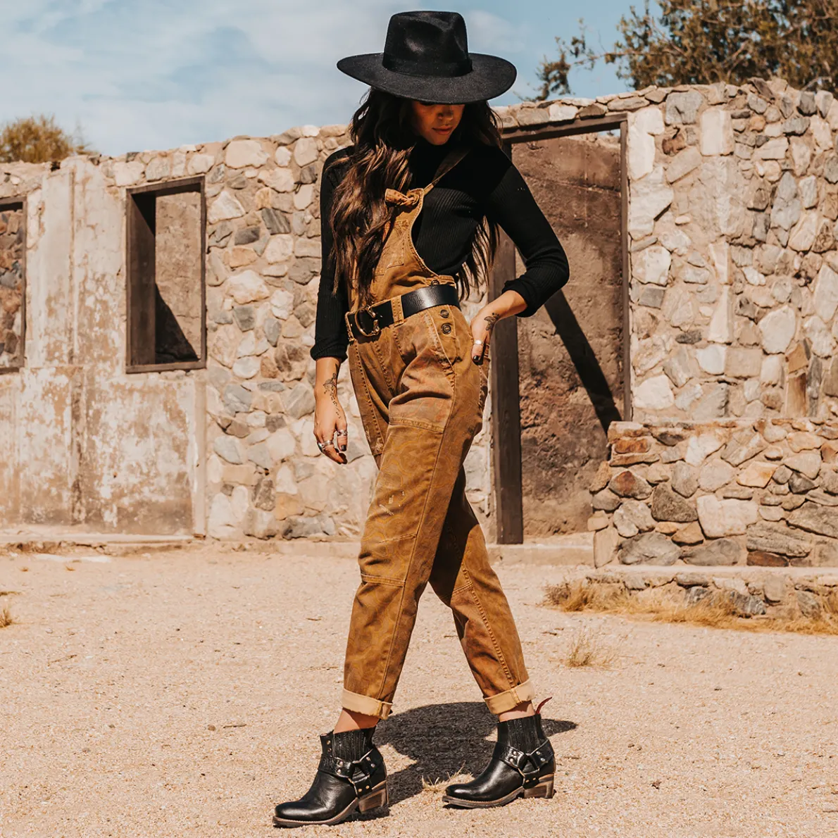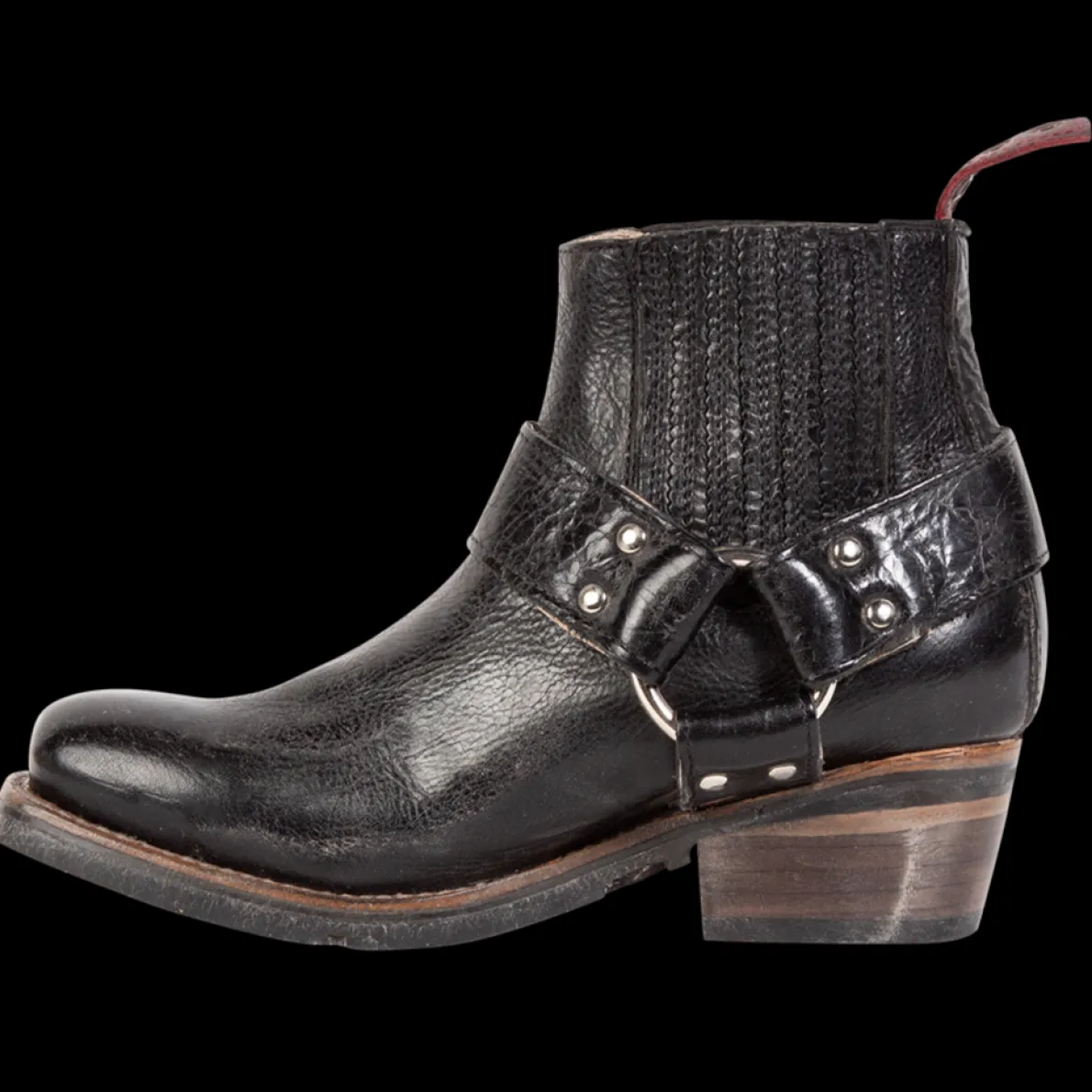 Harness The Wild West In The Whiskey. A Modern Square-Toe Silhouette Is Paired With Asturdy Rubber Tread Sole And Features An Iconic Silver Metal Hardware Harness. Its Pull-On Design Includes A Leather Back Pull Tab And Elastic Gore Sides For Effortless Styling.