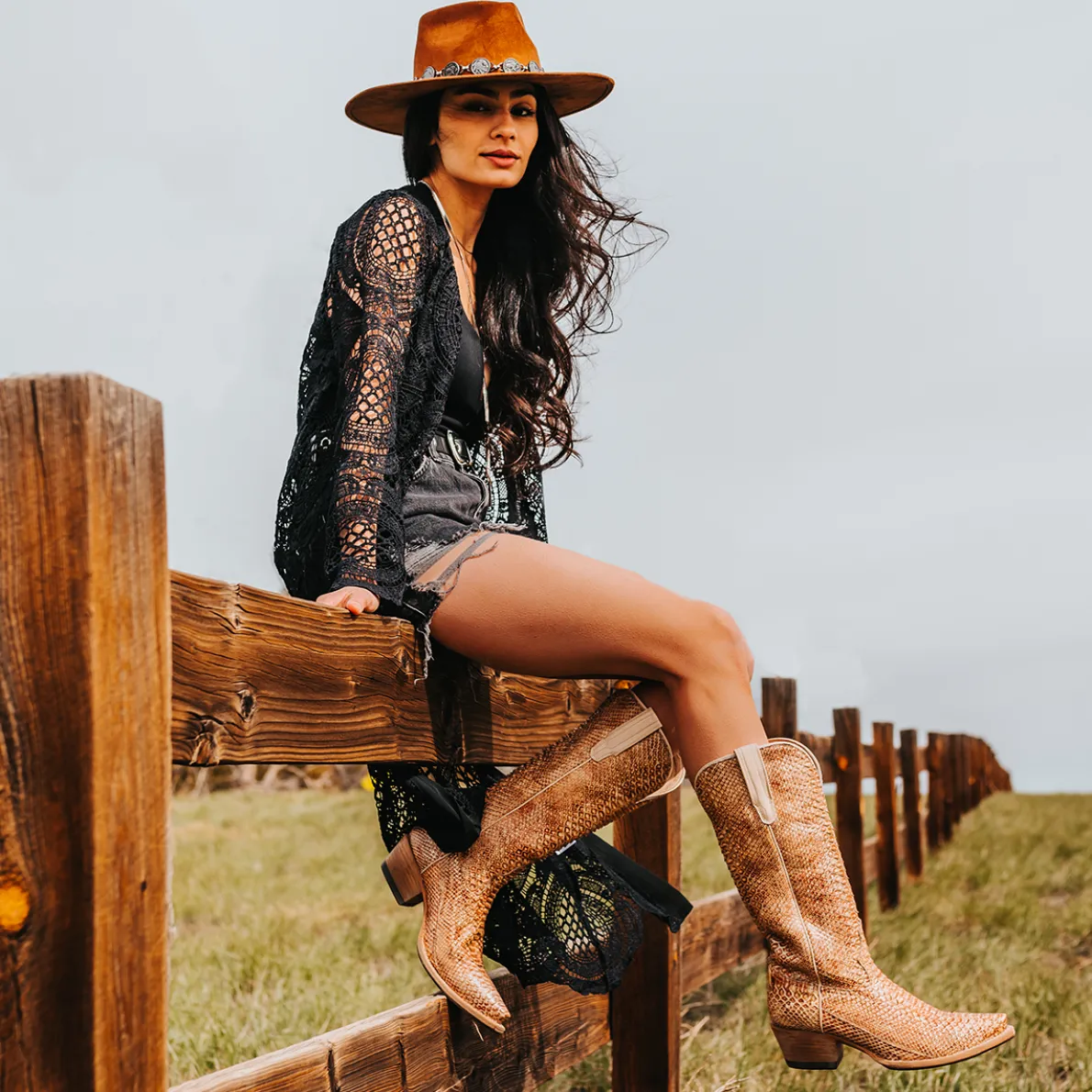 Woodland- An Outlaw Of The Wild West. This Most Wanted Boot Is The Perfect Ally With A Western Silhouette And Traditional Snip.Fashionedwith Decorative Stitching And Leather Pull Straps, This Low Heeled Boot Is Ready For Any Contest. Designedwith Genuine Python Leather.