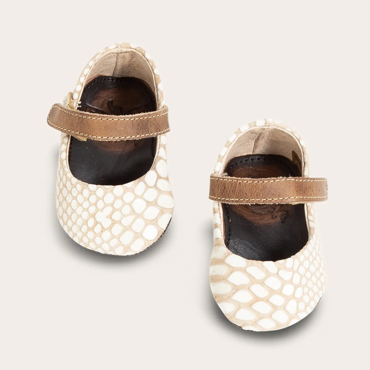 Give Your Little Dreamer Wings To Fly In Baby Jane. Created With Thoughtful Detail, Featuring A Delicate Leather Strap And A Velcro Fasten, This Shoe Offers A Secure, Charming Fit Making It The Perfect Addition To Any Outfit. Why We Love Soft Soles…Handcrafted With 100% Full-Grain Leather, Our Soft Soles Are Designed With Your Little Ones In Mind. Soft Soles Are Excellent For The Development Of Your Babies Feet Providing Room For Them To Move And Grow. Our Soft Sole Construction Is Perfect For Newborn Babies, Crawlers, And First-Time Walkers.