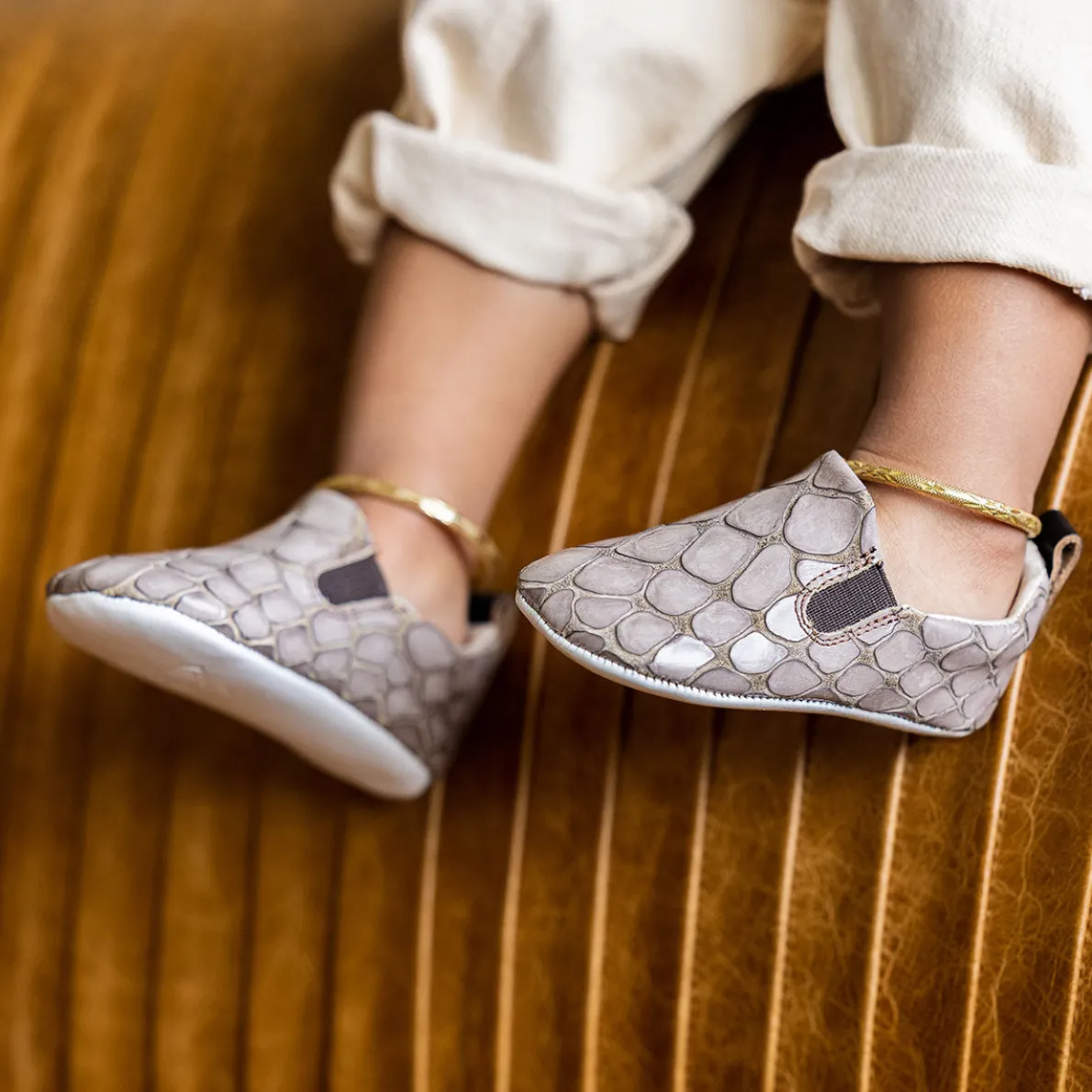 Let Your Mini Explore Their Sense Of Wander. This Leather Slip-On Features Elastic Panels For A Flexible, Secure Fit. Your Little One Is Sure To Create Adventurous Memories In Their Baby Kicks. Why We Love Soft Soles…Handcrafted With 100% Full-Grain Leather, Our Soft Soles Are Designed With Your Little Ones In Mind. Soft Soles Are Excellent For The Development Of Your Babies Feet Providing Room For Them To Move And Grow. Our Soft Sole Construction Is Perfect For Newborn Babies, Crawlers, And First-Time Walkers.