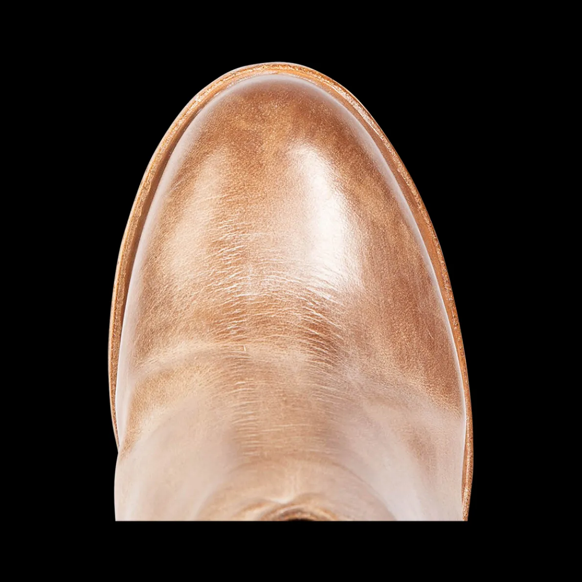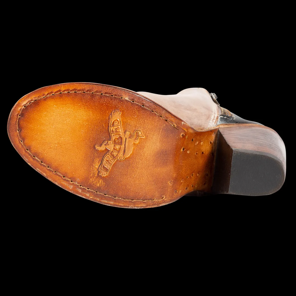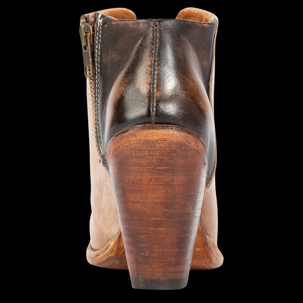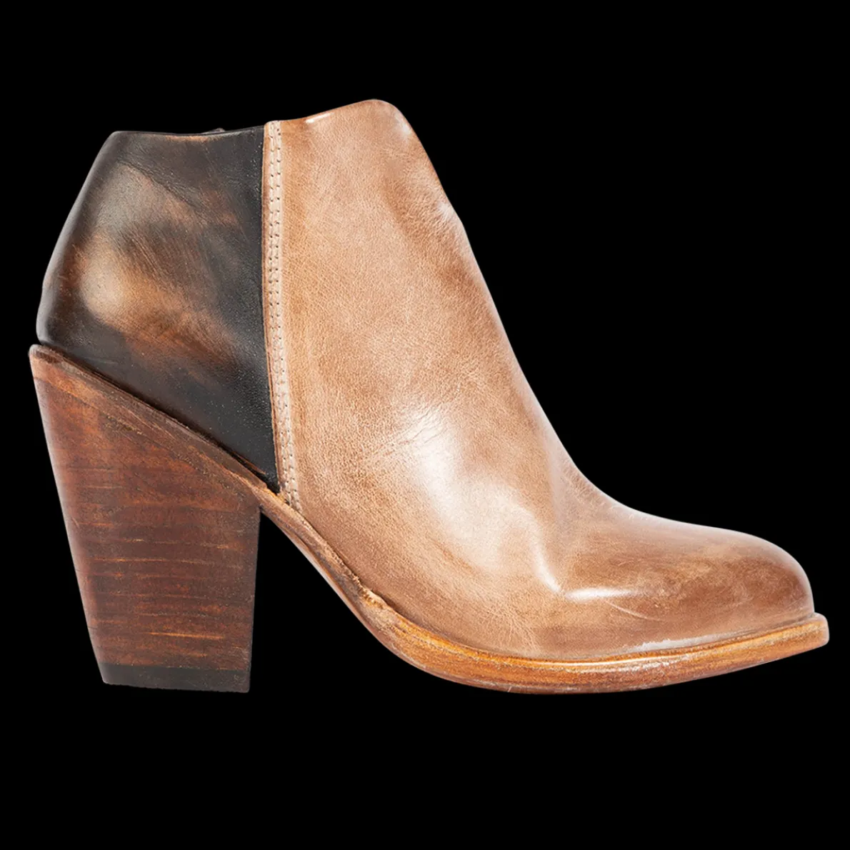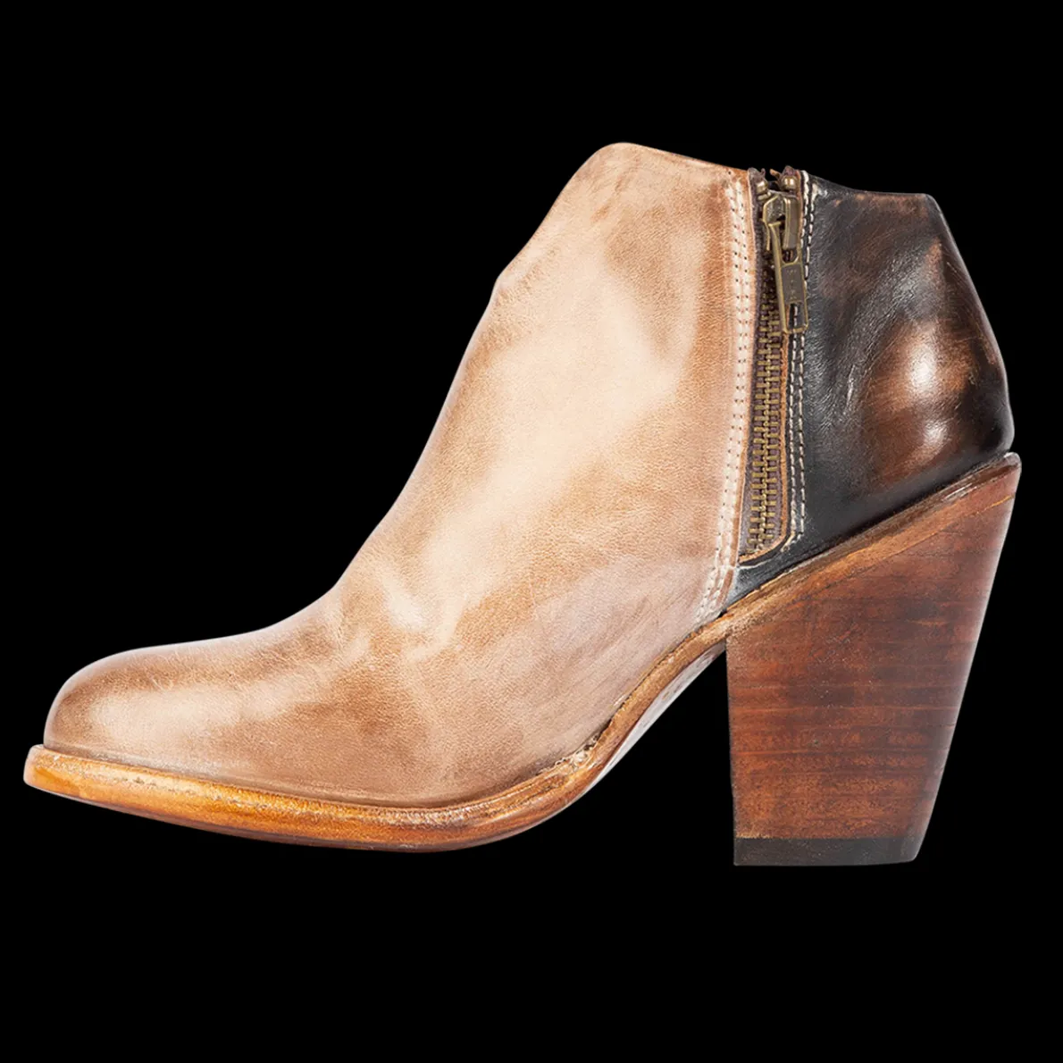 Get Ready To Turn Heads In Detroit. This Inverted Heeled Bootie Is A Timeless Classic That Features A Front Cutout Dip, Two-Toned Leather, And An Inside Zip Closure. Complimented With Simplistic Detailing For An Effortless Style.