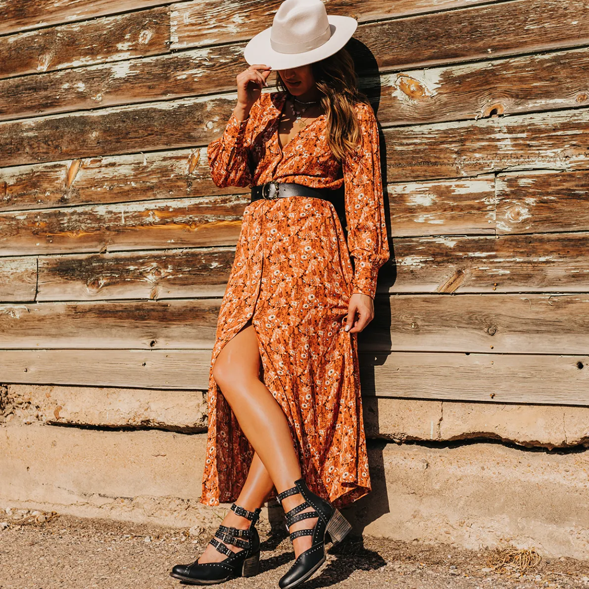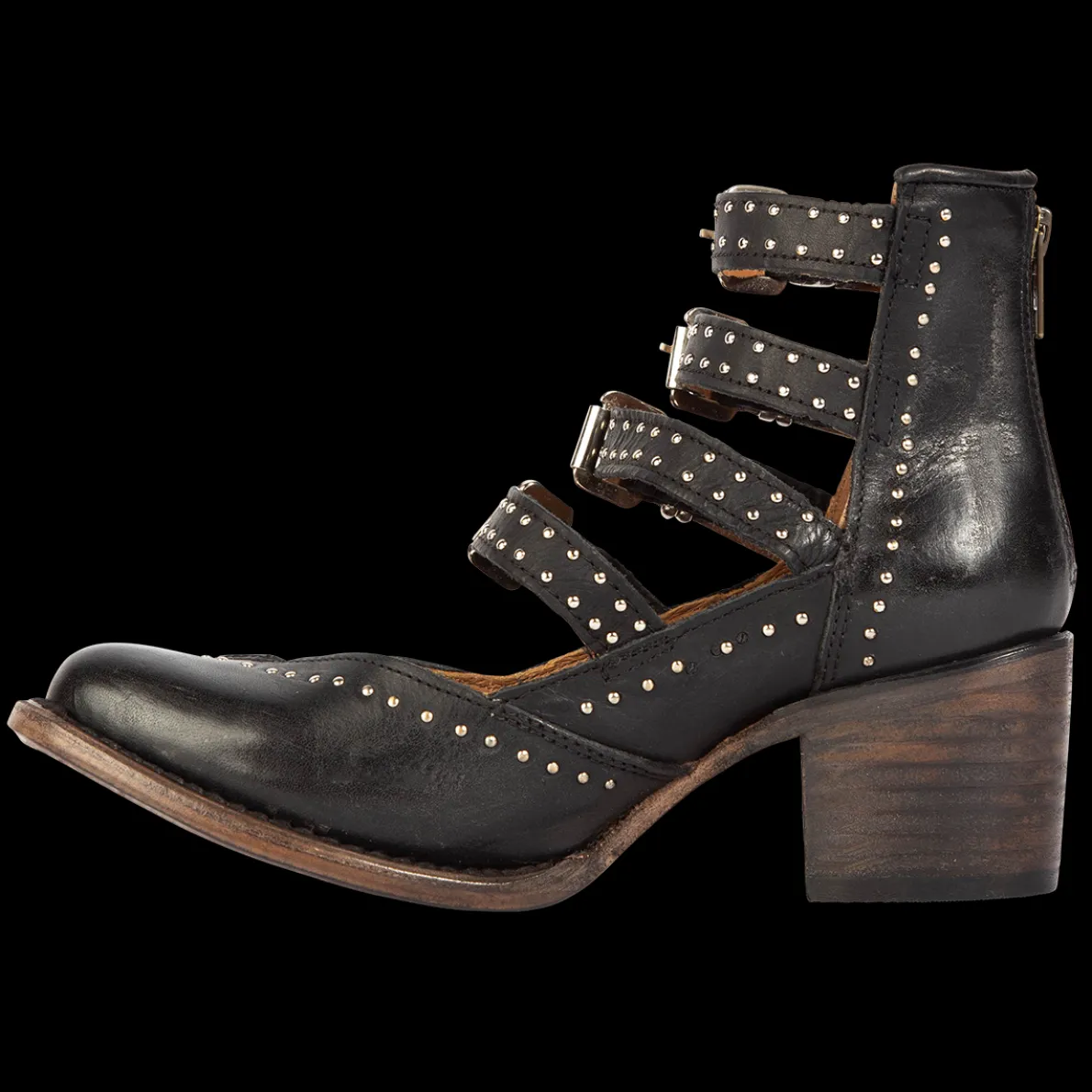 Felicity’s Elegant Western Structure Is Adorned With Silver Stud Embellished Leather And Adjustable Straps For The Perfect Customizable Fit. Finished With A Working Back Brass Zip And Almond Toe, This Open Construction Shoe Isready For Any Occasion. Leather Upper, Leather Lining, Leather Sole Handcraftedin Mexico 2¼”Heel Height 4¾” Shaft Height Adjustable Shaft Circumference Measurements Taken From Us Size 8