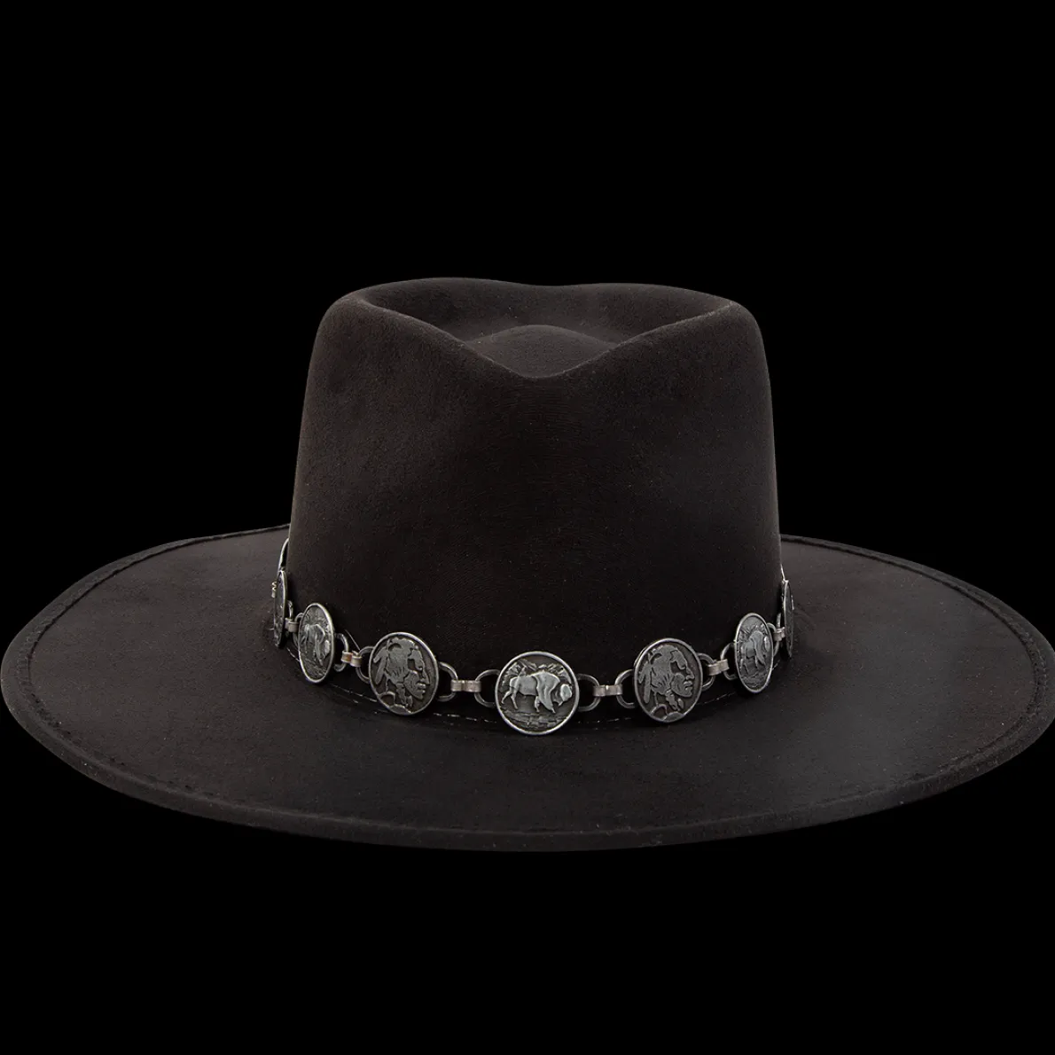 This Hat Was Crafted With A Diamond-Shaped Crown And A-Line Wide Brim. Gemini Features A Metal Engraved Coin Band And An Elastic Sweatband For Comfortable Wear.
