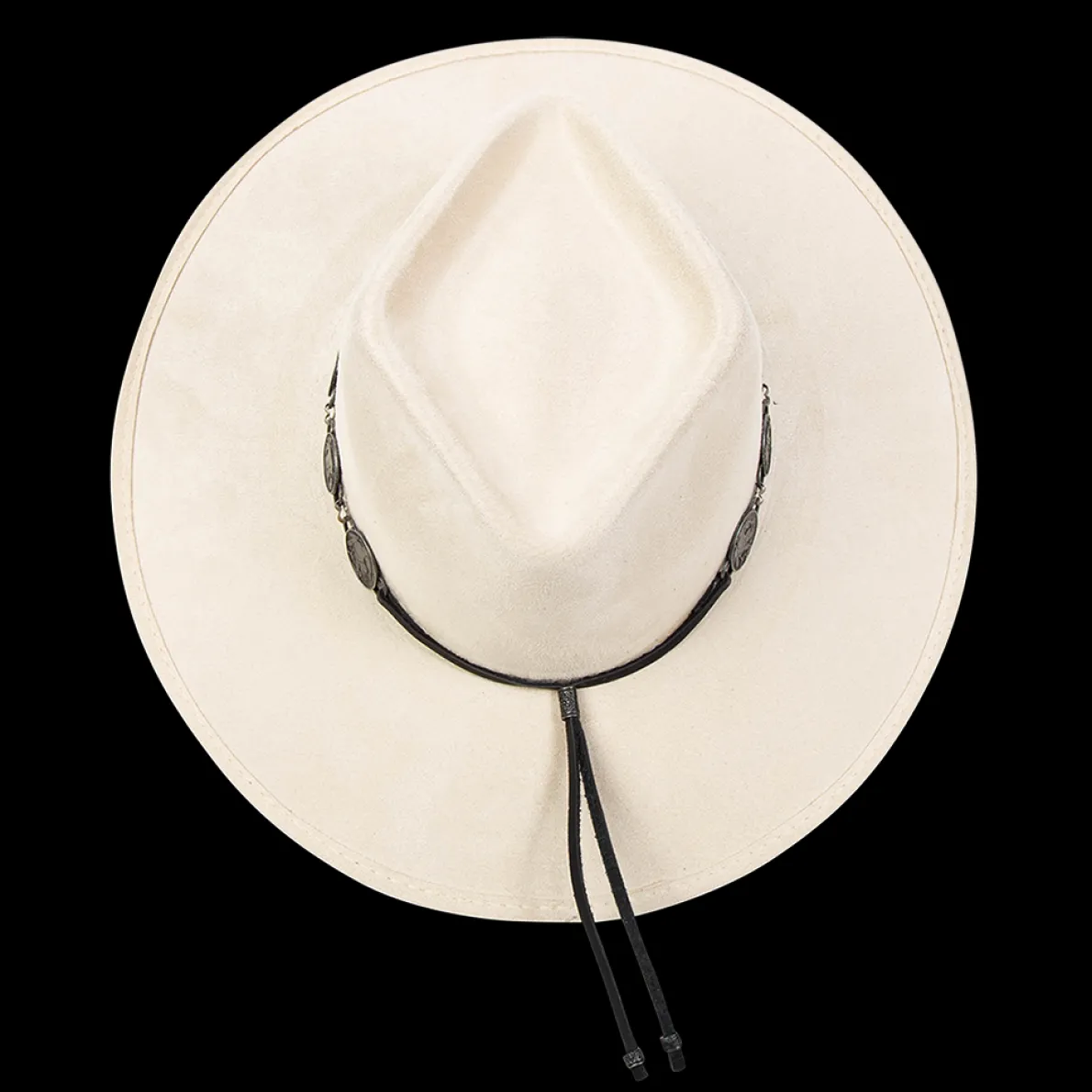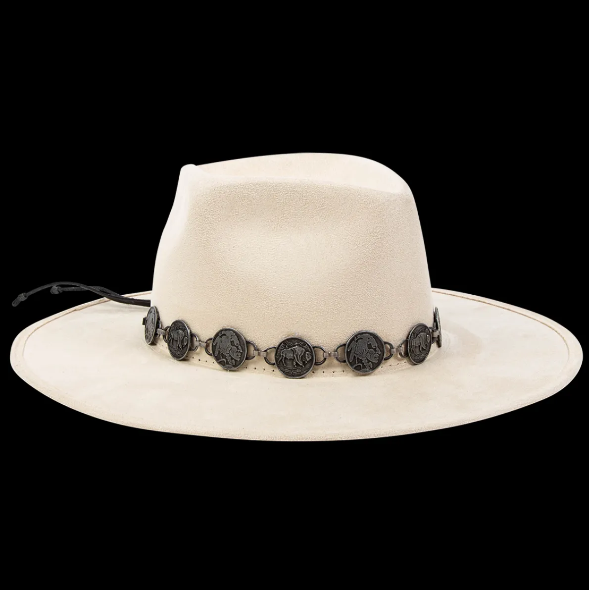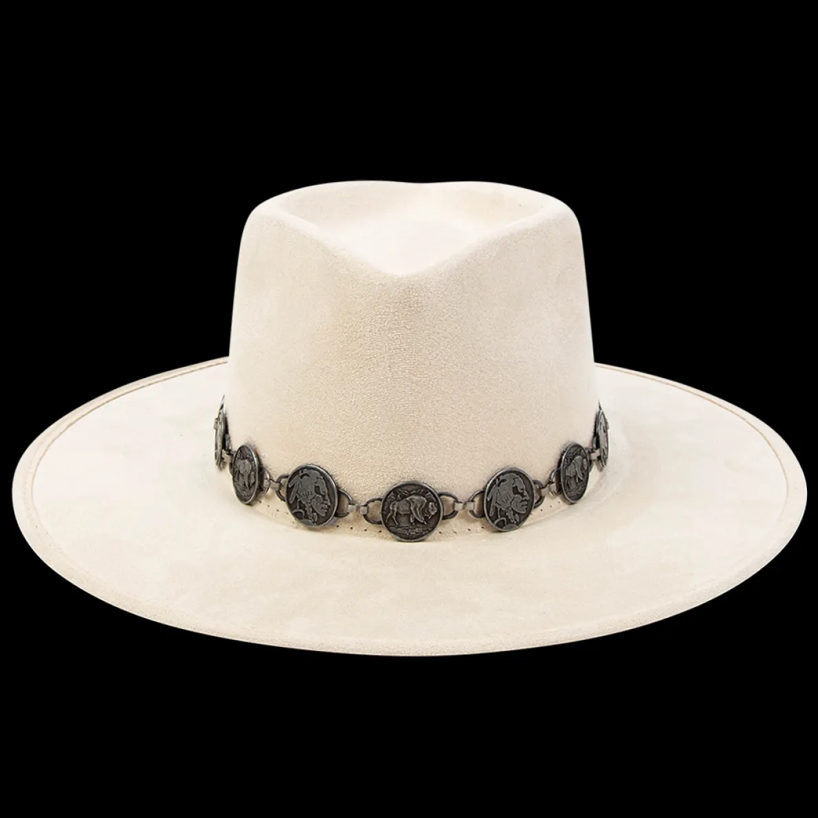 This Hat Was Crafted With A Diamond-Shaped Crown And A-Line Wide Brim. Gemini Features A Metal Engraved Coin Band And An Elastic Sweatband For Comfortable Wear.
