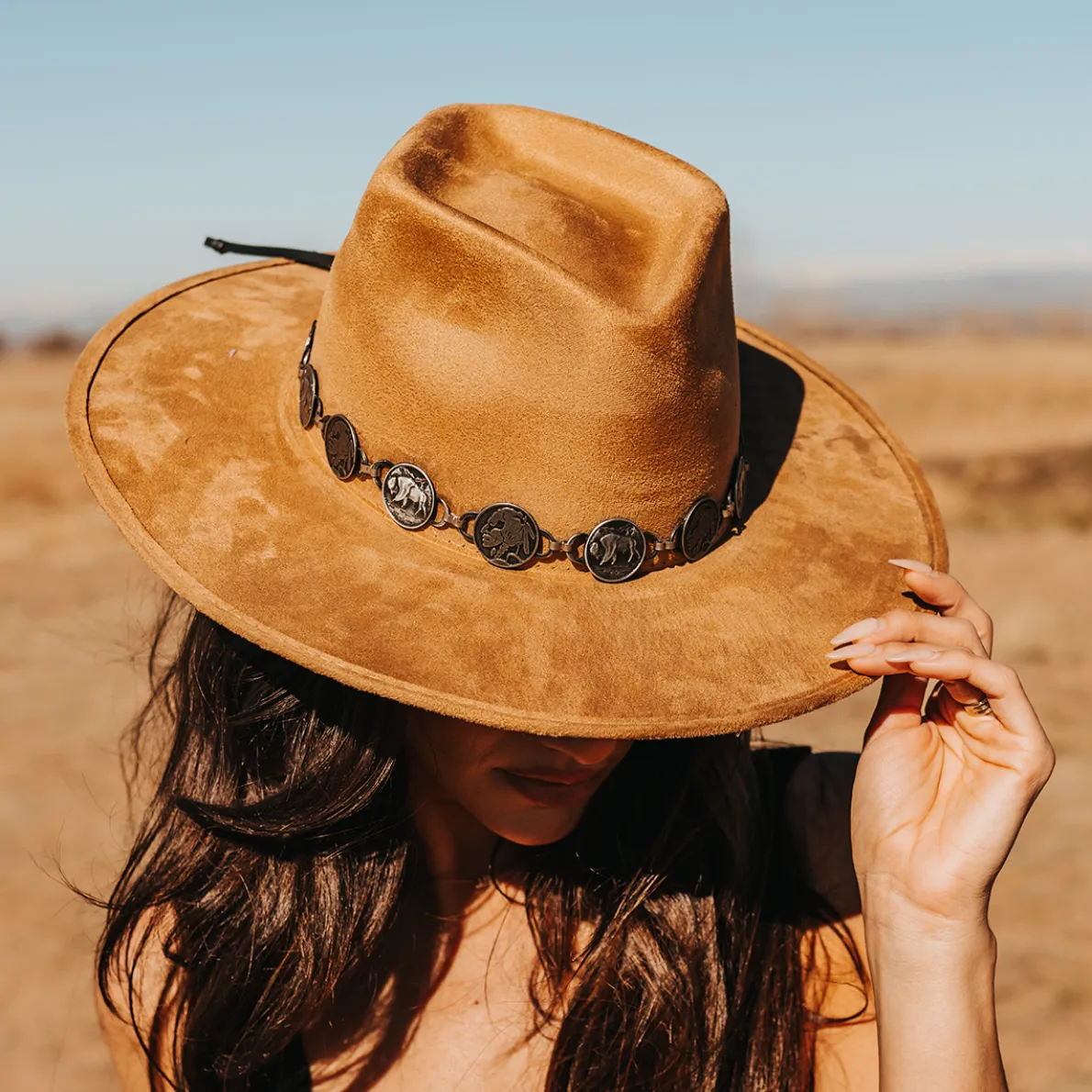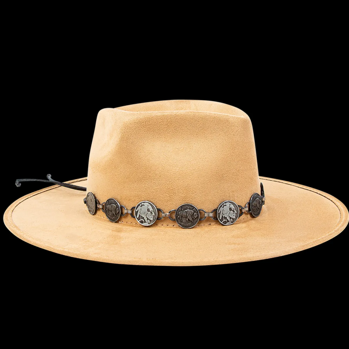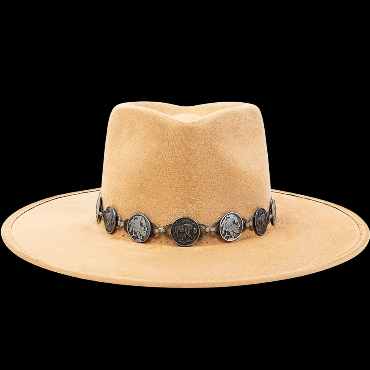 This Hat Was Crafted With A Diamond-Shaped Crown And A-Line Wide Brim. Gemini Features A Metal Engraved Coin Band And An Elastic Sweatband For Comfortable Wear.