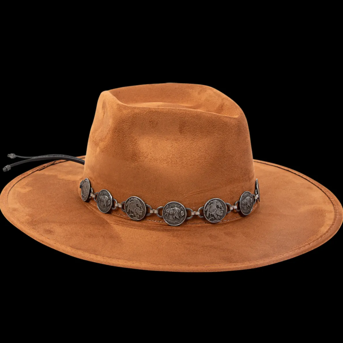 This Hat Was Crafted With A Diamond-Shaped Crown And A-Line Wide Brim. Gemini Features A Metal Engraved Coin Band And An Elastic Sweatband For Comfortable Wear.