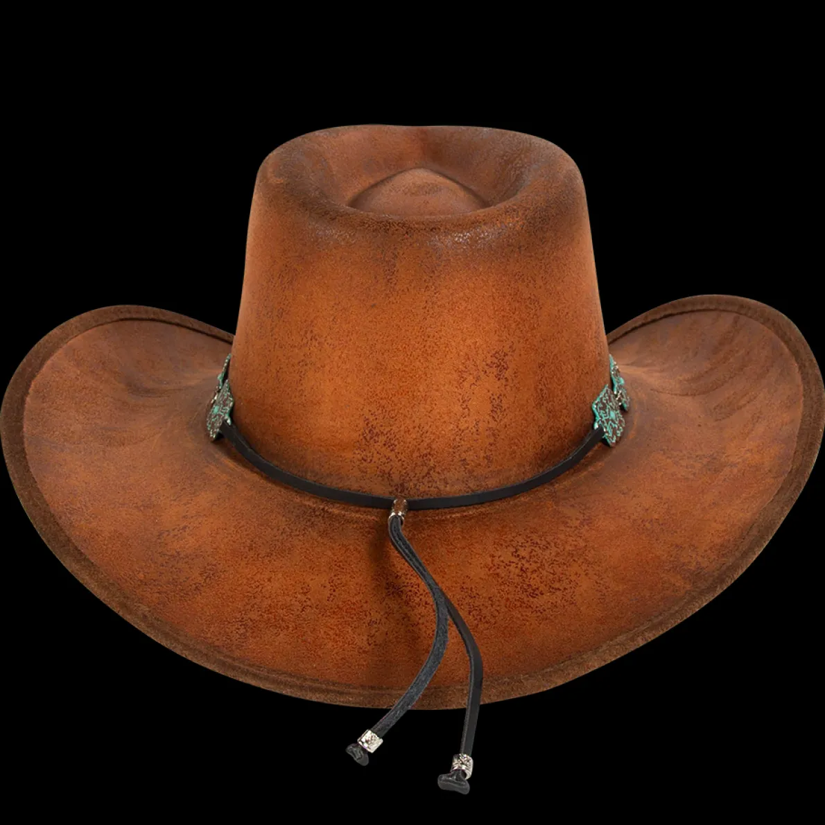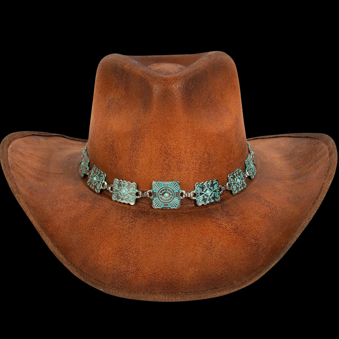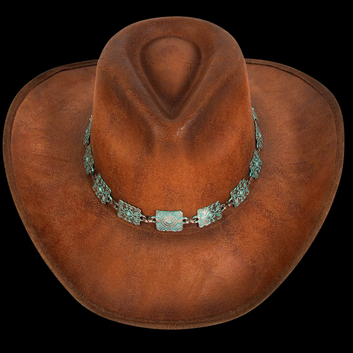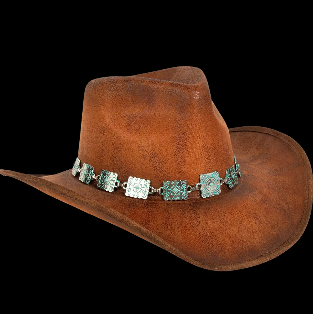 Crafted With A Tear-Drop Crown And An Upturned Brim, Lasso Is A Classic Western-Inspired Hat With Added Texture. Adorned With A Turquoise Metal Engraved Band That Pops Against The Neutral Hues.