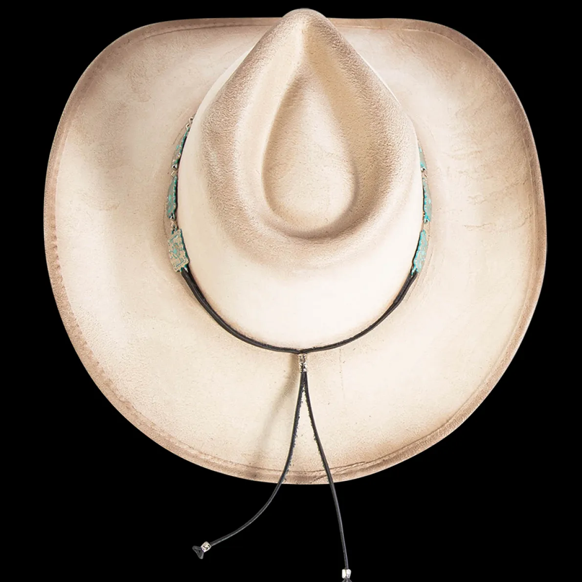 Crafted With A Tear-Drop Crown And An Upturned Brim, Lasso Is A Classic Western-Inspired Hat With Added Texture. Adorned With A Turquoise Metal Engraved Band That Pops Against The Neutral Hues.