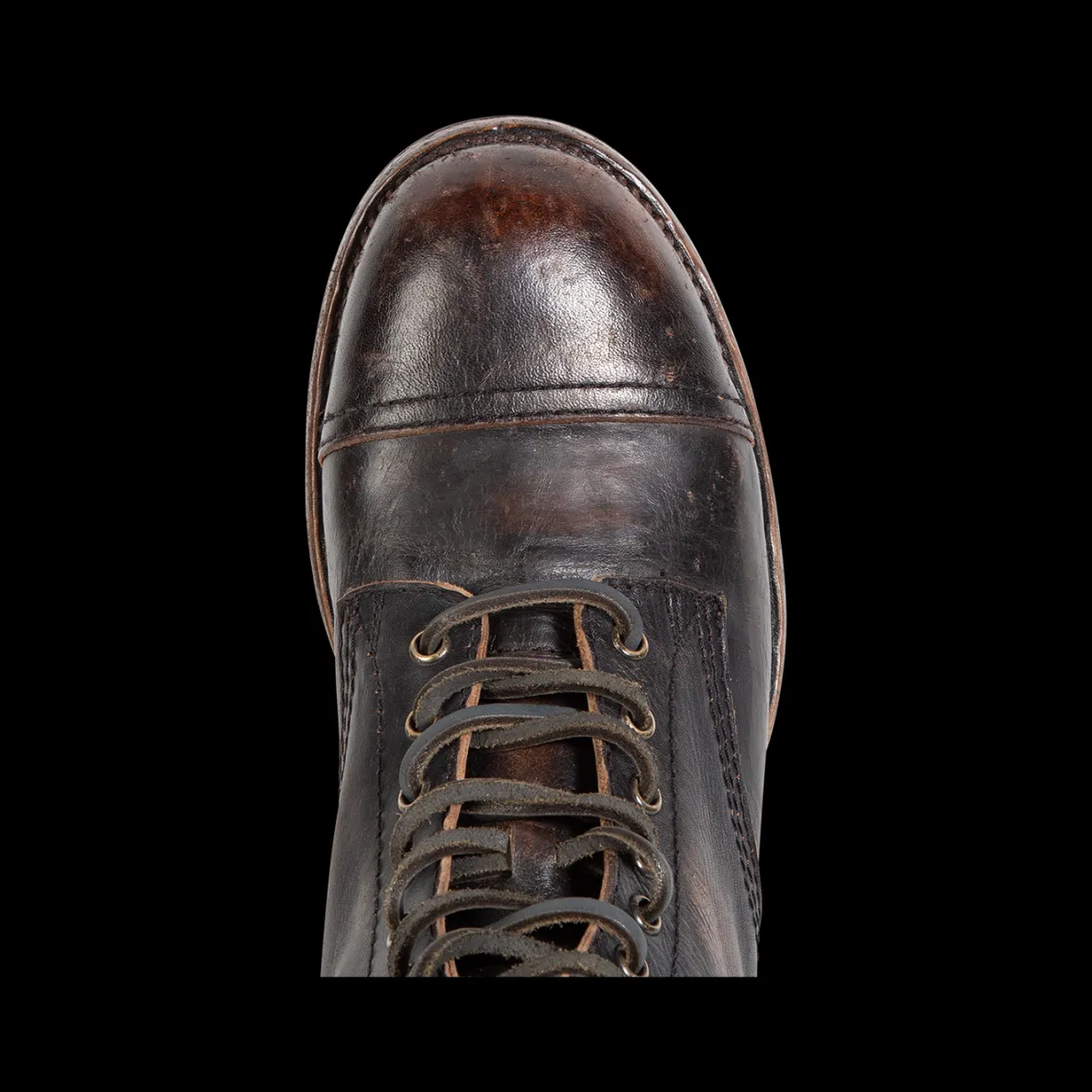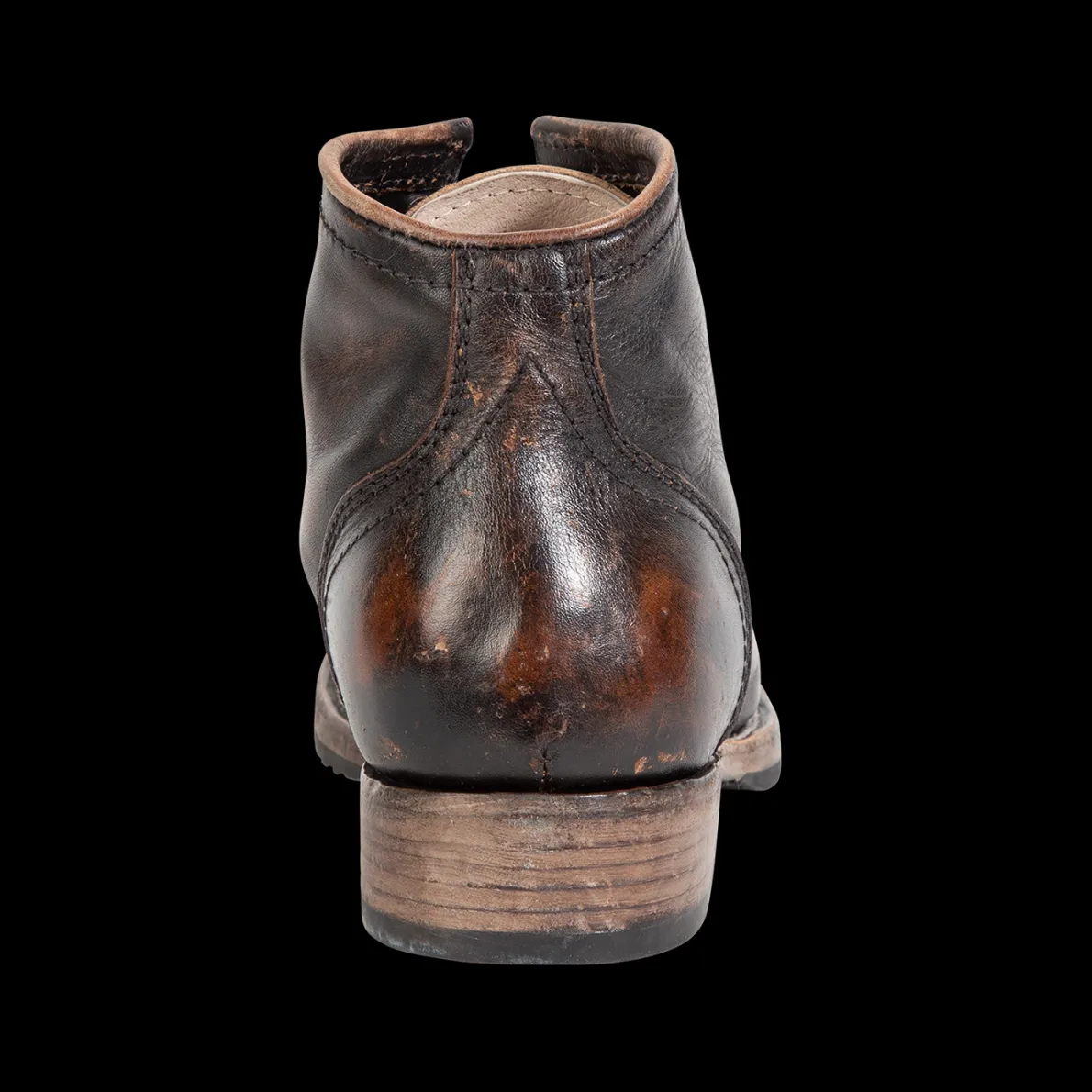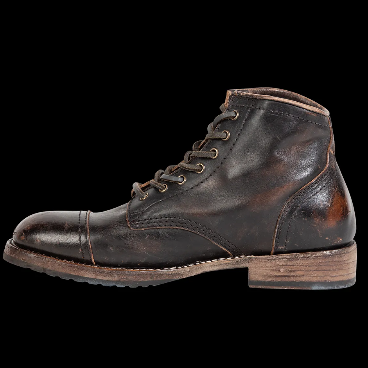 Leavenworth. This Distressedboot Was Handcrafted With 100% Full-Grain Leather And Features A Round Toe, Low Heel, And Adjustable Leather Lacing.