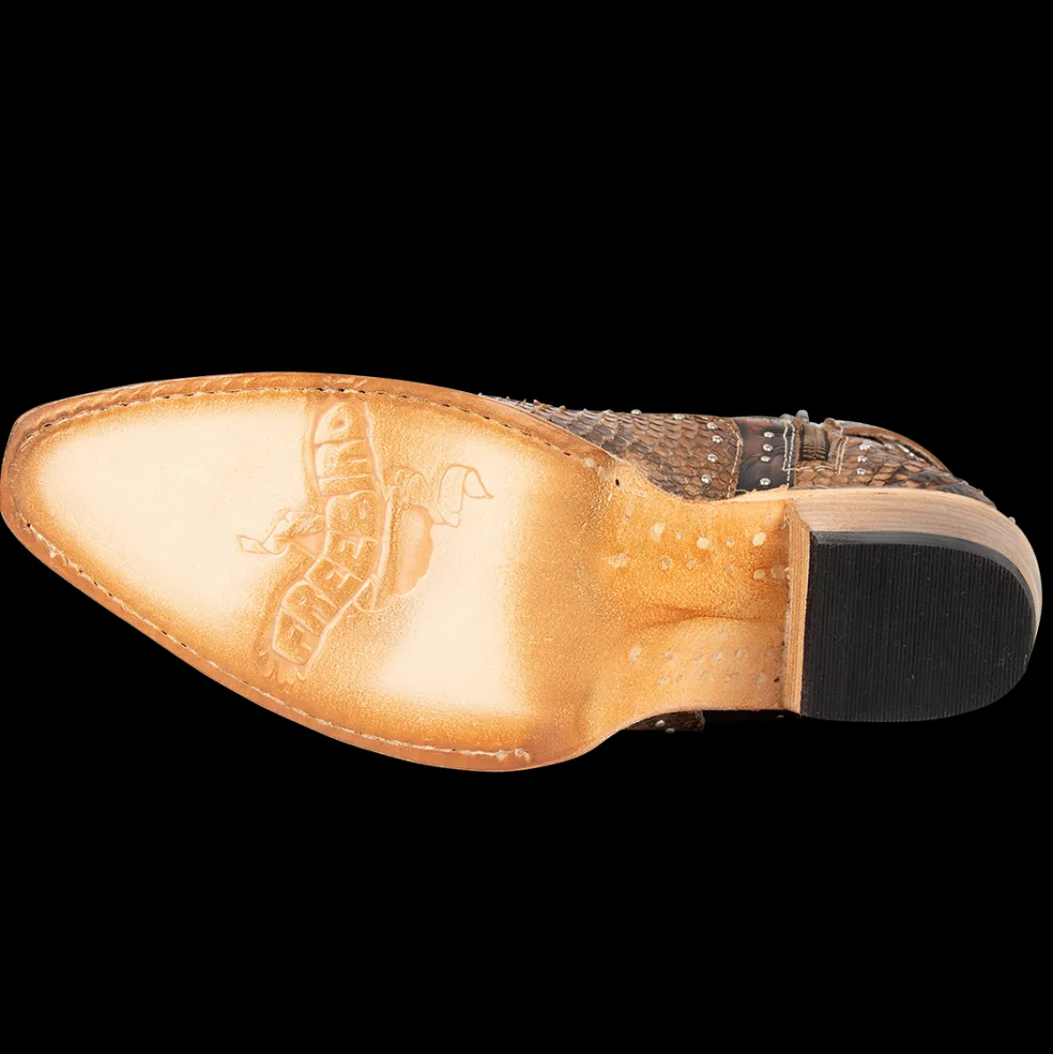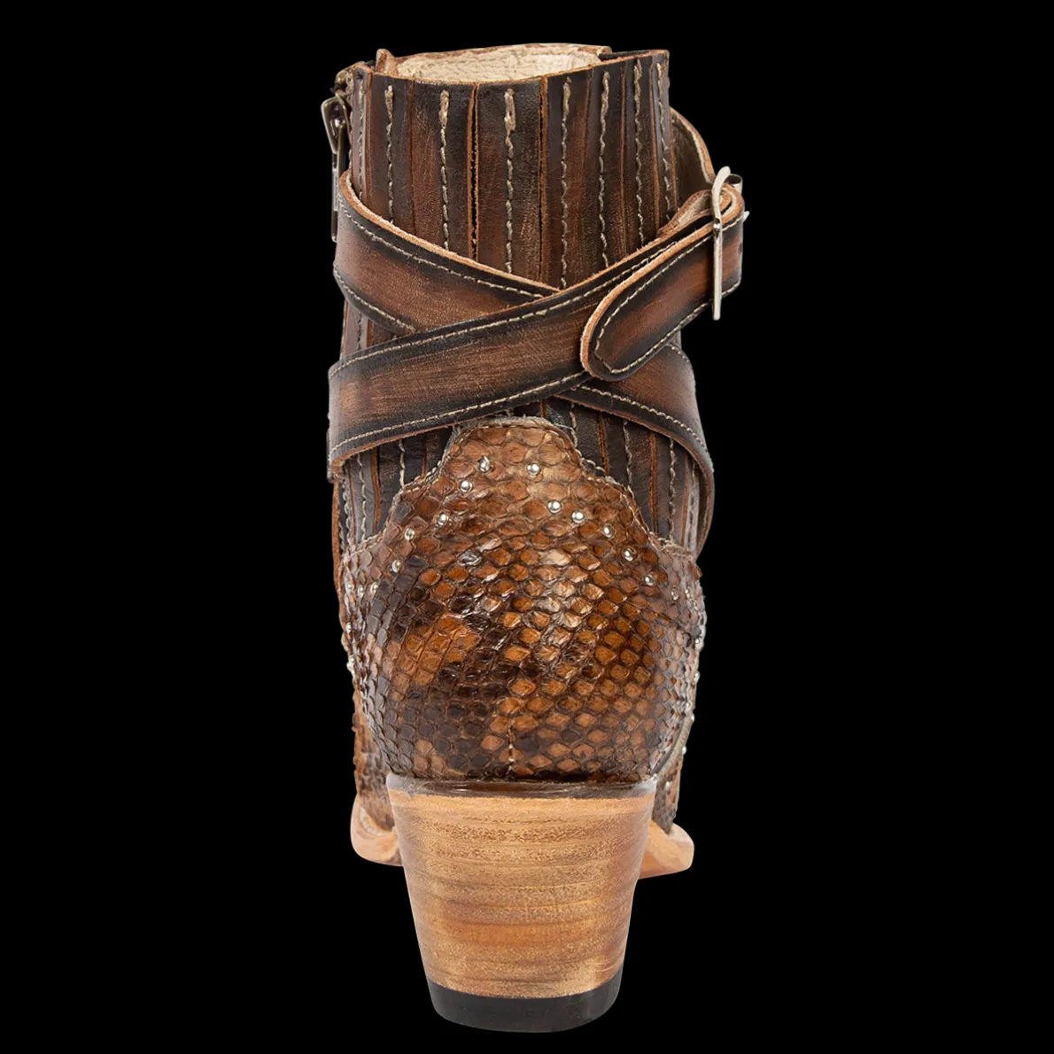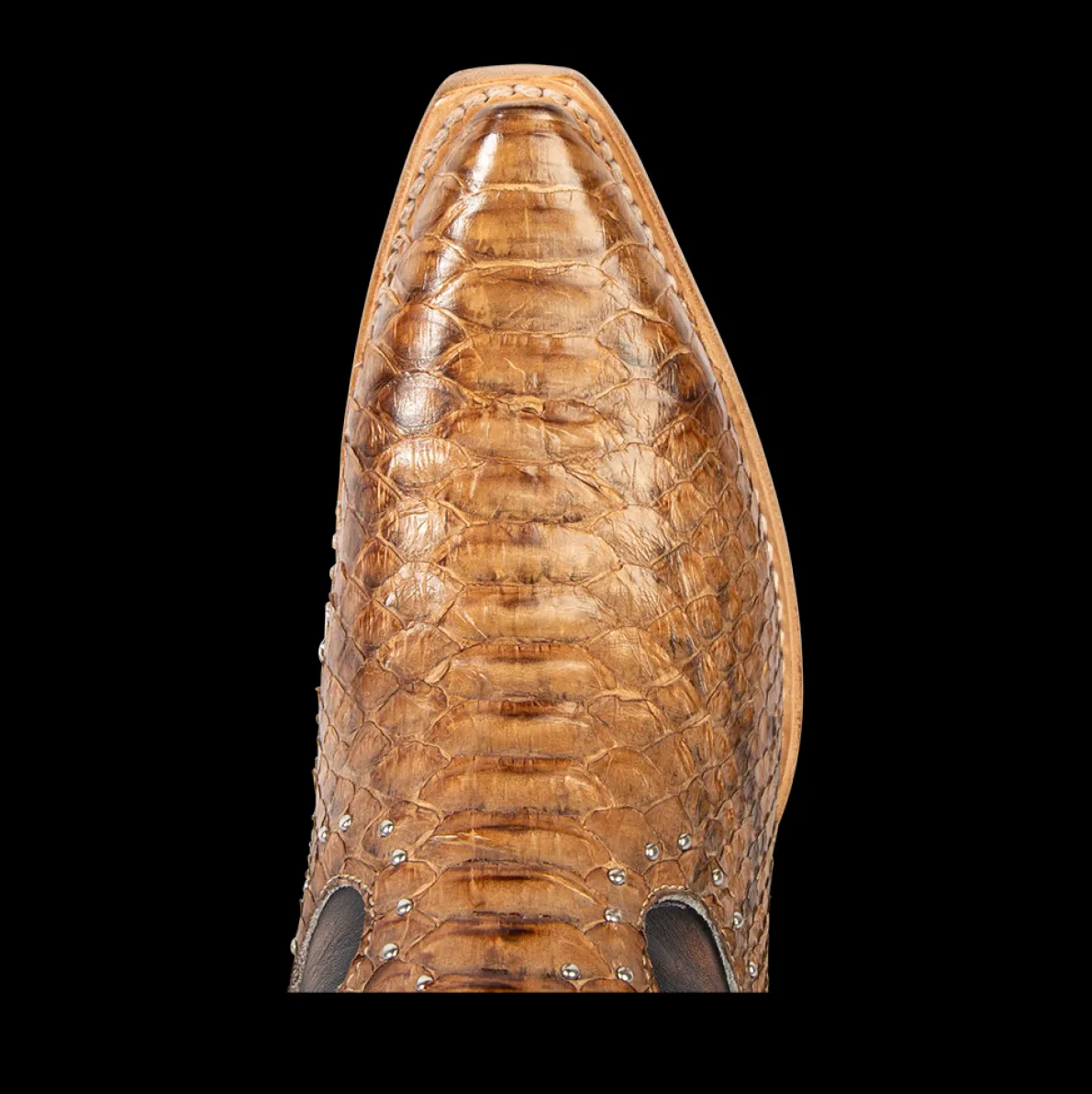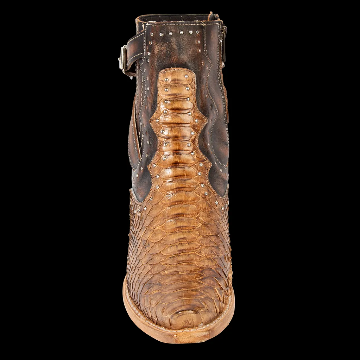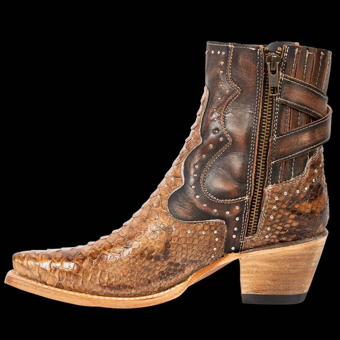 Breaking All The Rules – Morgan. Constructed With Exotic Leather, This Ankle Bootie Displays Handcrafted Detailing At Every Curve, With Its Silver Studs, Criss-Crossing Heel Strap, And Classic Snip Toe. Finished With A Working Zip Closure And Gore Backing For Additional Flexibility. Designed With Genuine Python Leather.