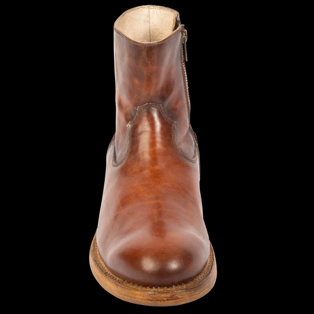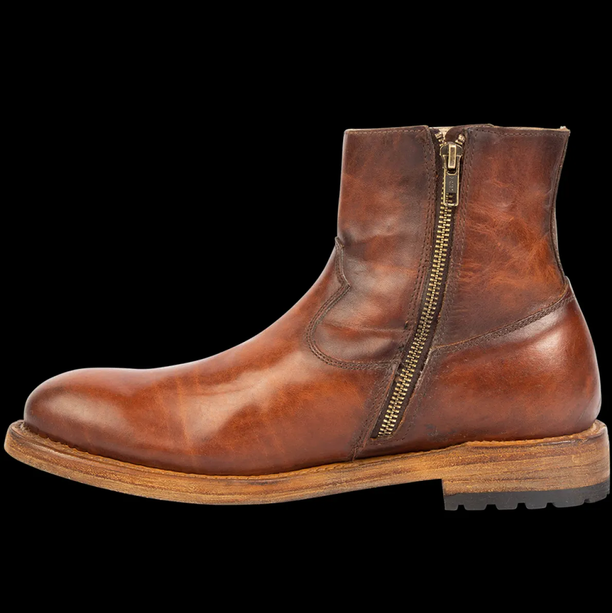 Introducingpueblo, Your New On The Go Ankle Boot. This Distressed Boot Features An Almond Shaped Toe And Leather Stitch Details For A Modernlook.Finished With A Working Brass Zip Closure For Ease Of Wear. Leather Upper, Leather Lining,Rubber Tread Sole Made In Mexico 1¾”Heel Height 7 ⅞”Shaft Height Measurements Taken From Us Size 10