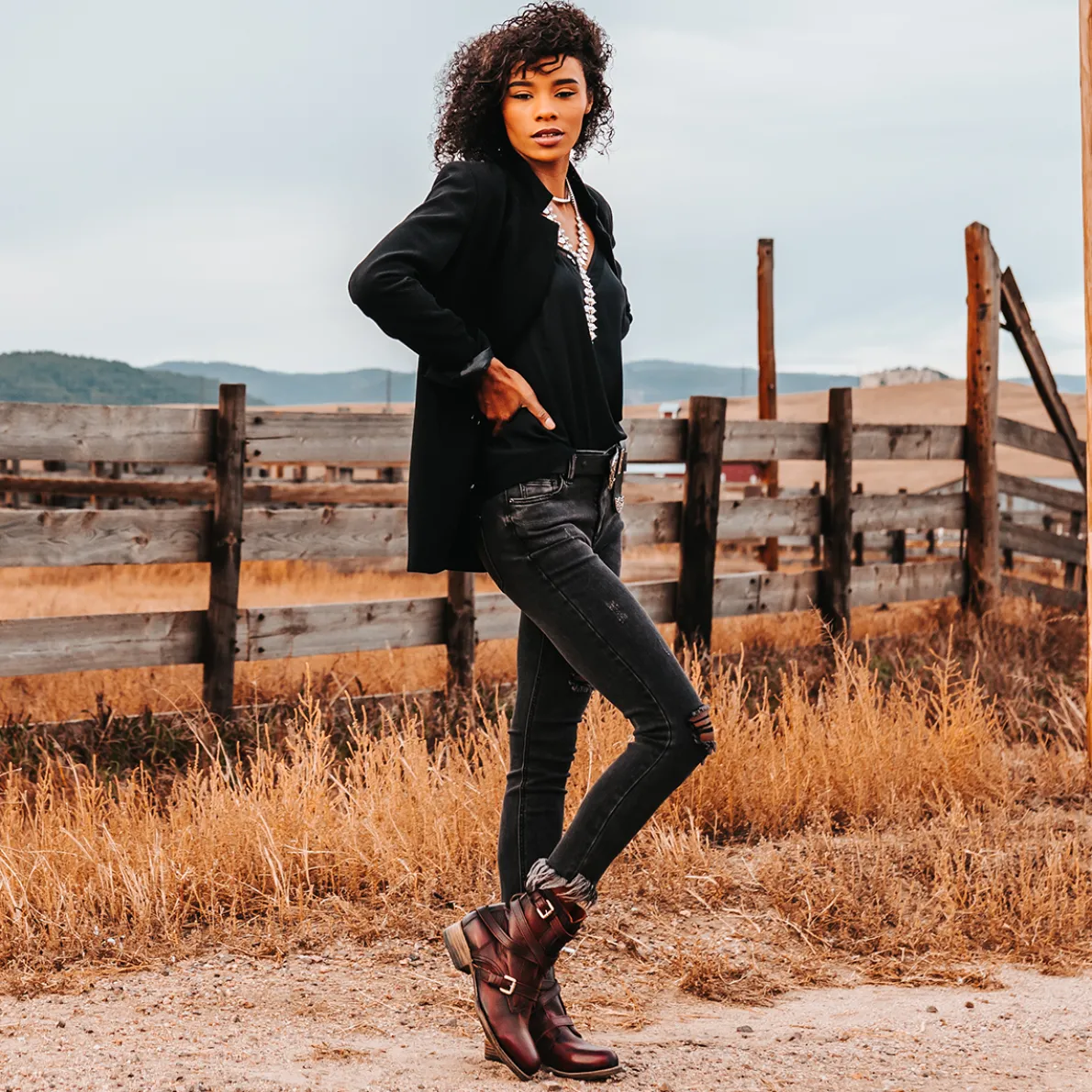 Raine – The Ruler Of Ultimate Comfort. Constructedwith Astacked Wooden Heel, Round Toe, And Inside Zip Closure Making For Ease Of Wear. This Bootie Is Detailed With An Overlapped Shaft And Includes Adjustable Buckle Straps For A More Customizable Fit.