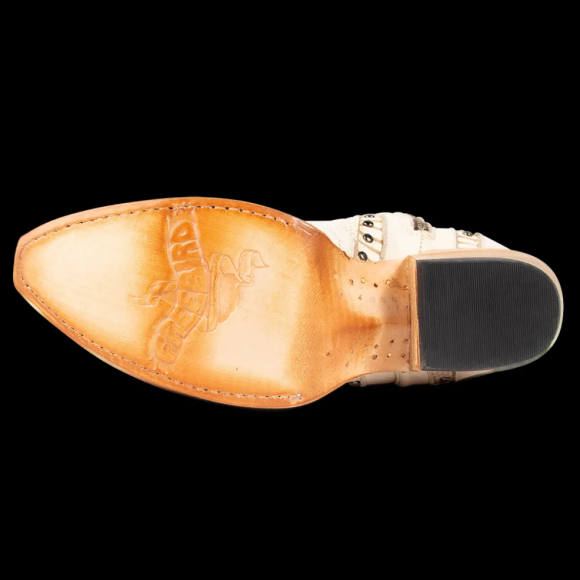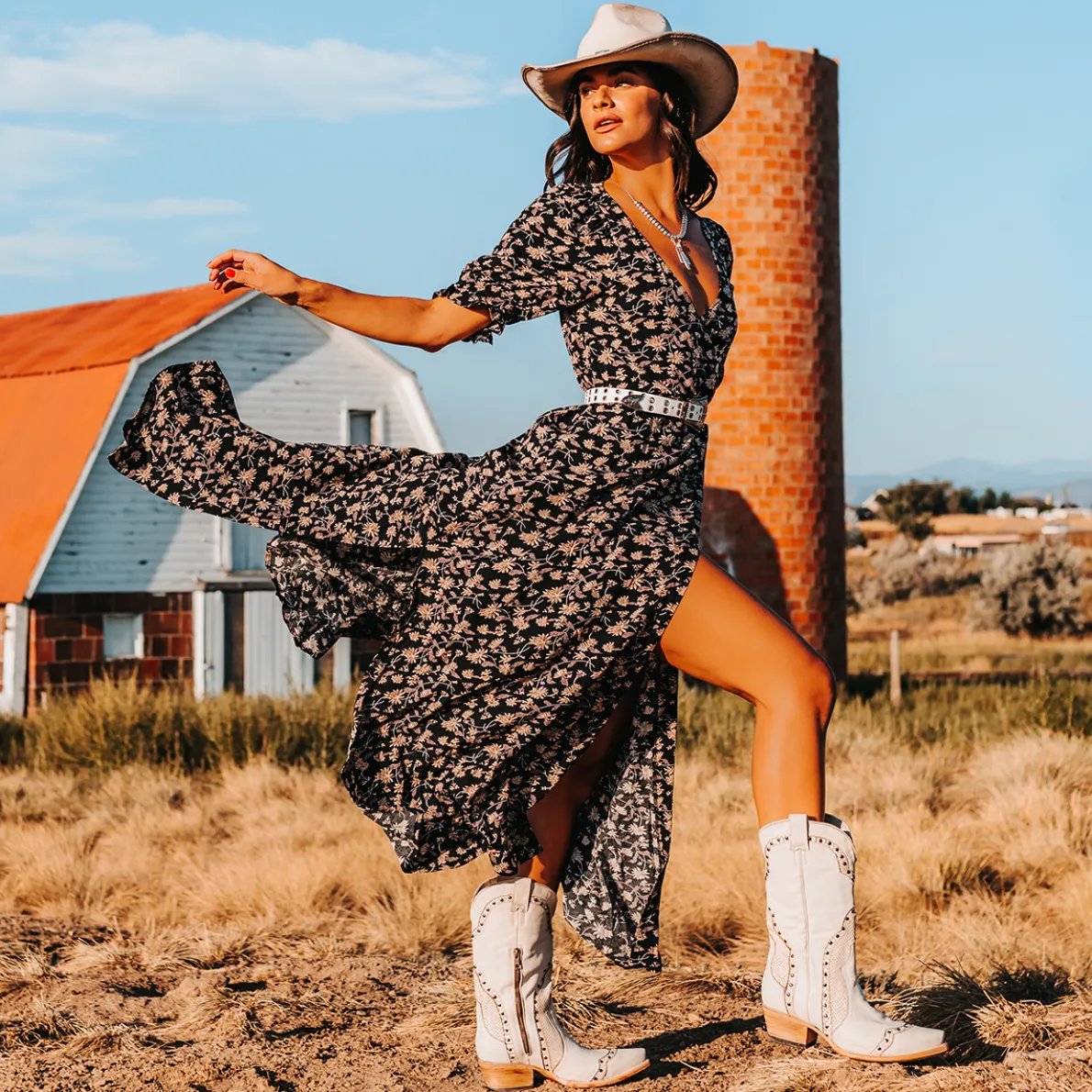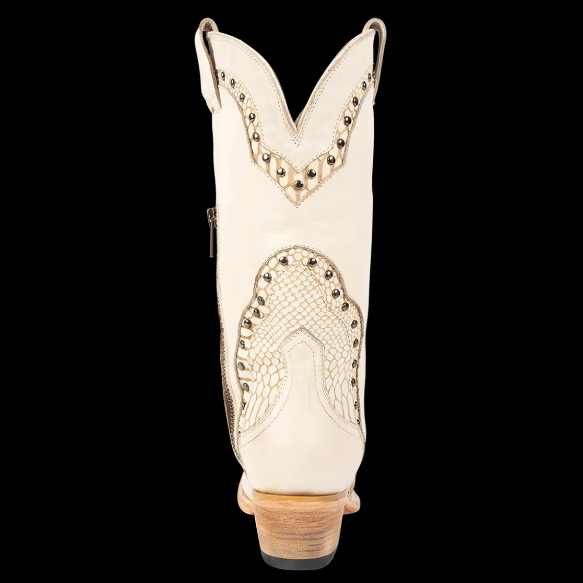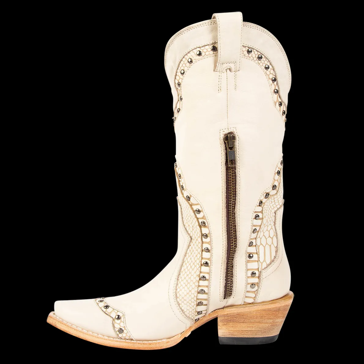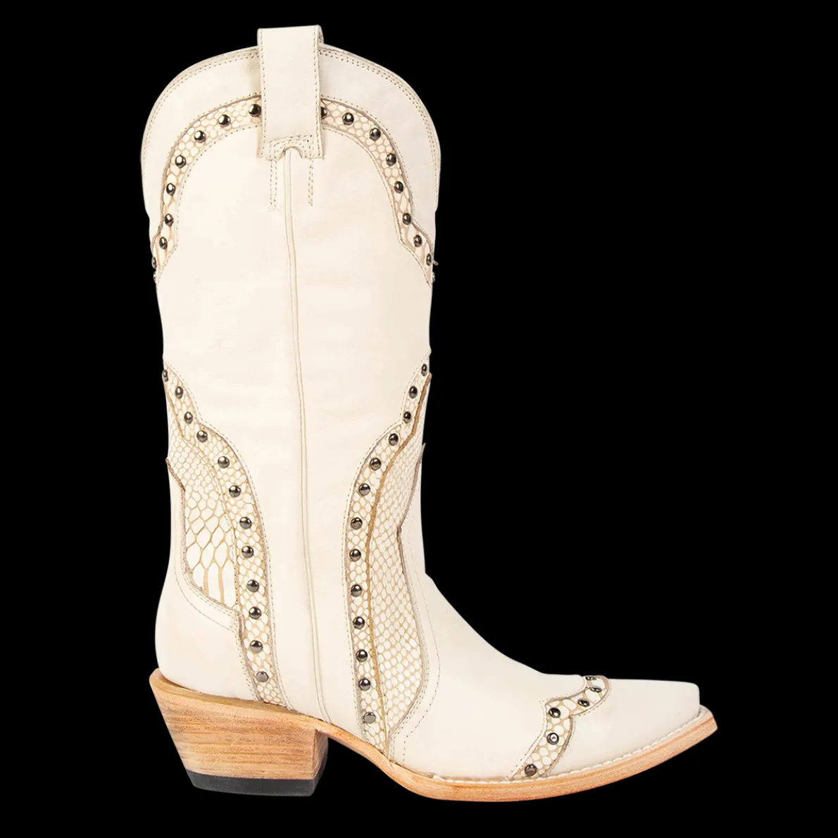 Designed With Artistic Craftsmanship, Warner Featuresembossed Leather Detailing Andmetal Studs. Sitting At Mid-Calf, Thismemorableappearance Isfinishedwith A Slanted Heel, Scalloped Front Dip, And Snip Toe. Providing Western Flair, This Boot Featuresdouble Pull Straps And An Inside Zip Closure That Allows For Ease Of Wear.