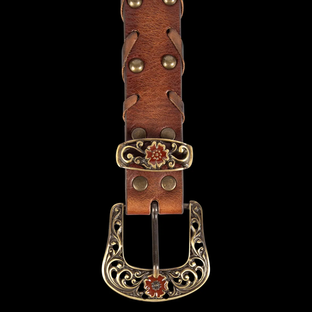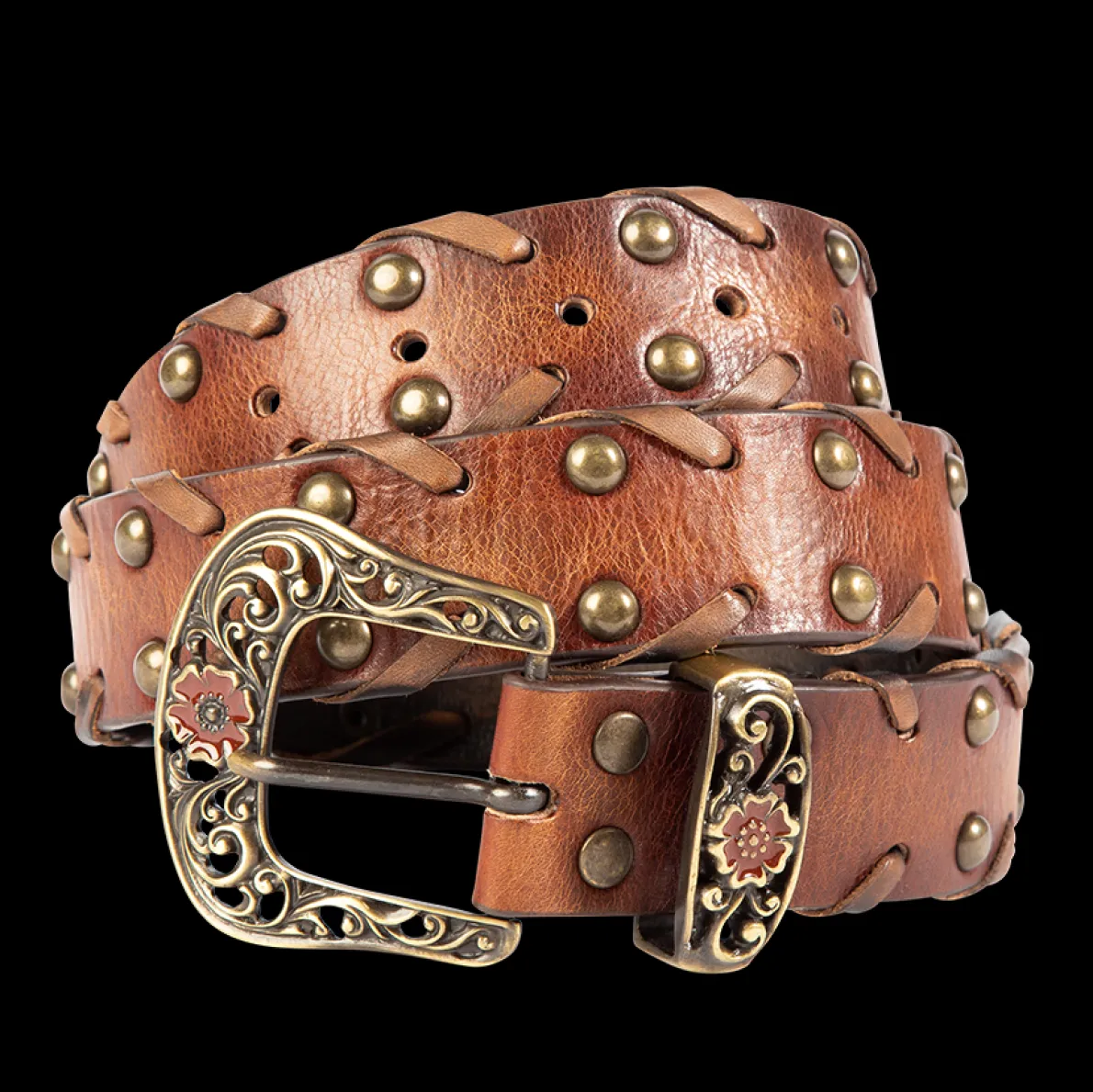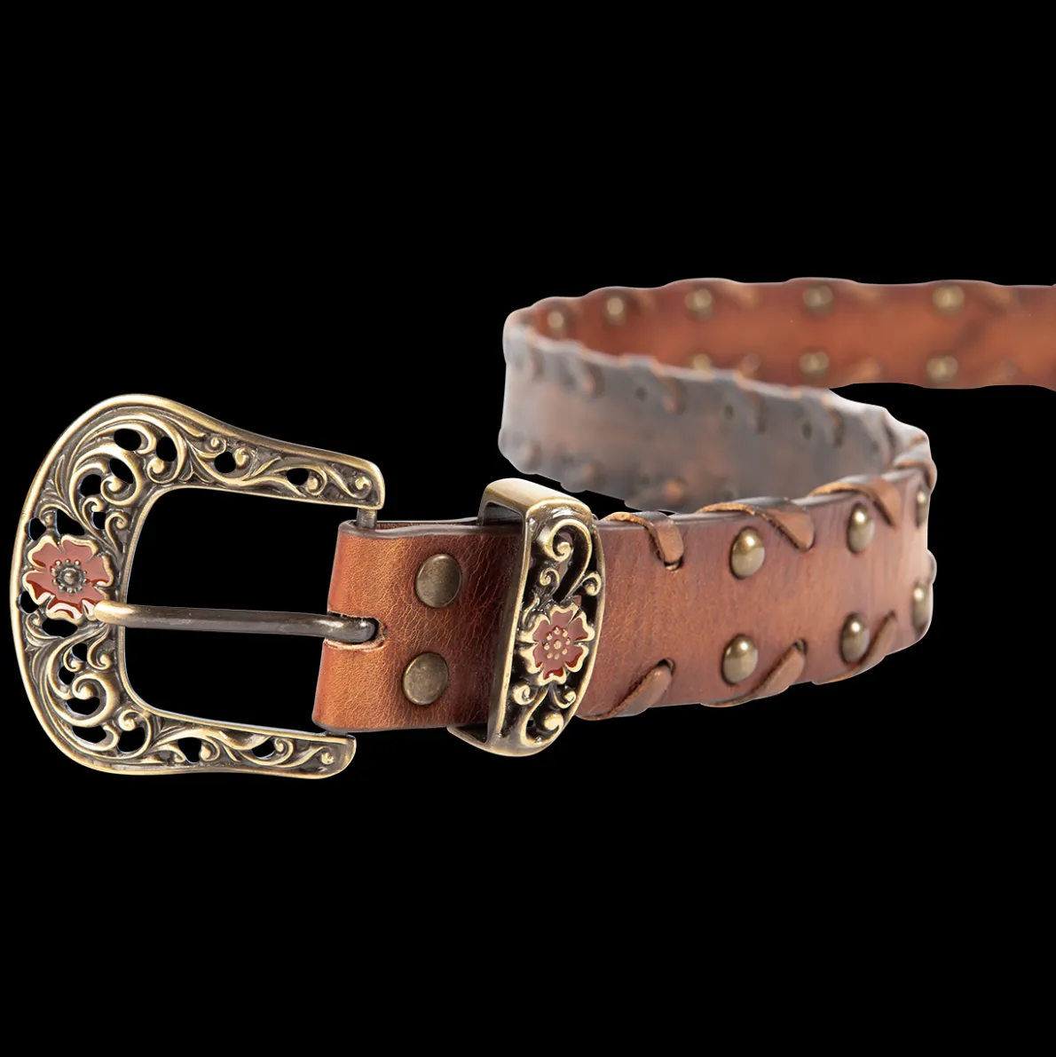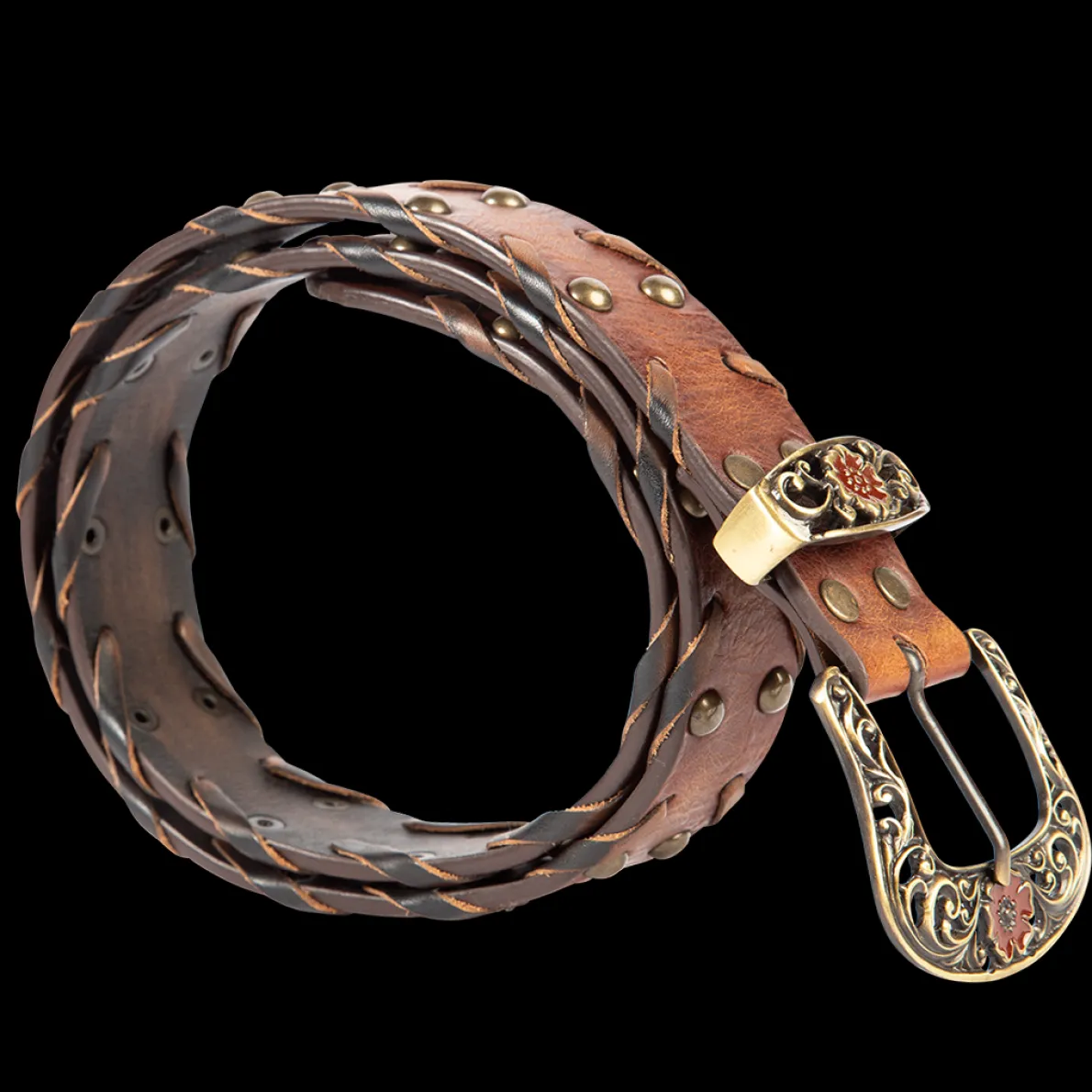 Introducing The Whip Stitch Belt. This Leather Belt Features Whip-Stitch Embroidereddetailing And Distressed Studding, Making This Belt The Perfect Accentto Add To Any Outfit.Handcrafted In Mexico With 100% Full-Grain Leather. 1 ⅜”Strap Width 2½”Buckle Height 40″ Full Belt Length 32″First Hole Measurement 36″Last Hole Measurement 1″ Spacing Between Holes Measurements Taken From Size Medium